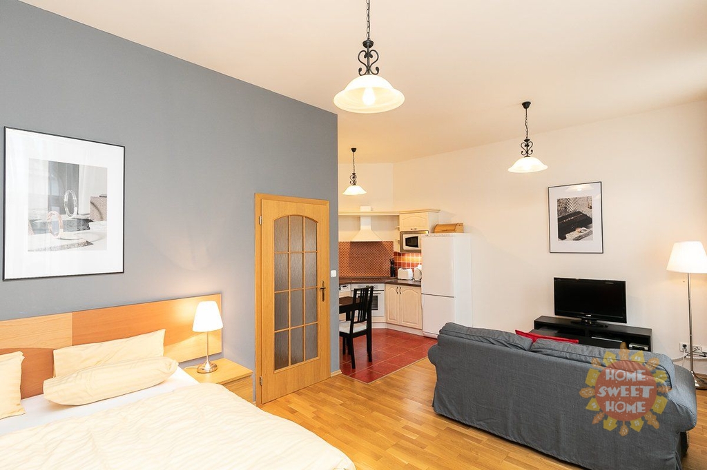 Praha, pronájem, krásný a útulný byt 1kk, zařízený, ulice Sázavská, parkování, 35 m2.