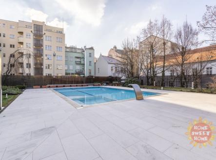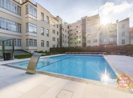 Praha pronájem, luxusní, zařízený byt 2+KK, 72m2, bazén, výtah, podzemní parkování, Vinohrady