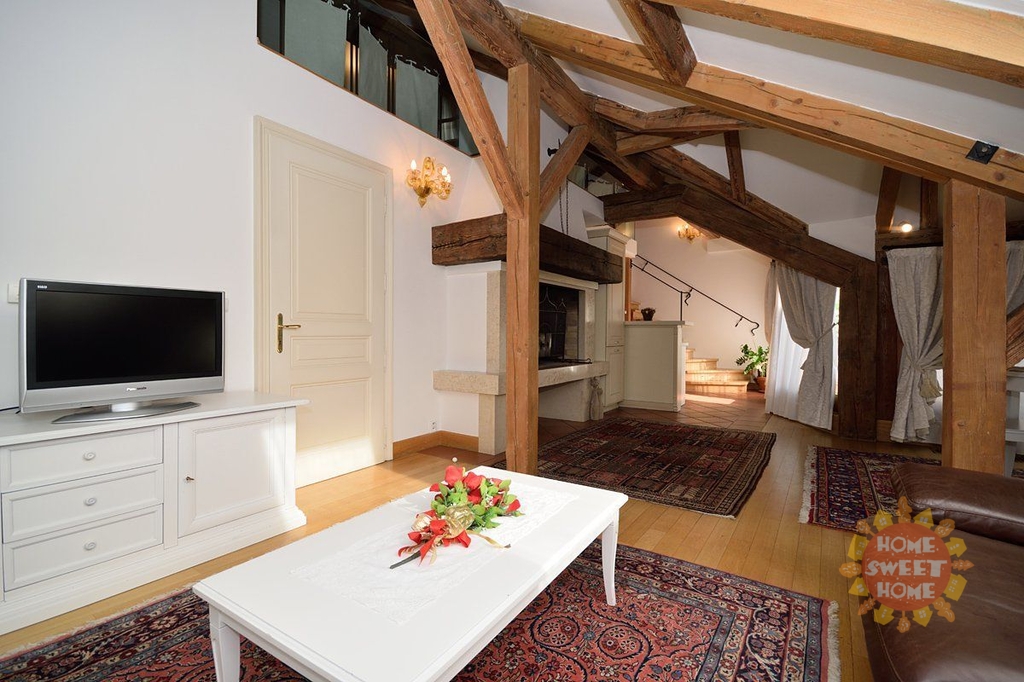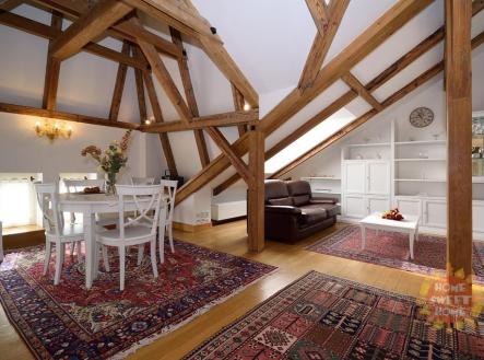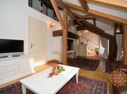 Nabízíme k pronájmu luxusní mezonetový apartmán 3+kk po rekonstrukci o celkové rozloze 127 m2 , který se nachází v 5.nadzemním podlaží secesního domu s výtahem v ulici Truhlářská, jen pár kroků od náměstí Republiky. V bytě jsou zachovány původní prvky, přiznané trámy z masivního dřeva a je kompletně zařízen nábytkem v italském stylu. V bytě jsou 2 ložnice (jedna z ložnic je orientována do vnitrobloku a druhá se spolu s pracovním koutem nachází v otevřené galerii), obývací pokoj s dominantním kamenným krbem a vstupem na terasu, dále také kompletně vybavená kuchyně vč. nádobí a příborů. Koupelna s rohovou masážní vanou, pračkou, bidetem a toaletou. K dispozici je kvalitní italské ložní prádlo a ručníky a je možné zajistit pravidelný úklid. Možnost i krátkodobého pronájmu. Dále možnost pronájmu hlídaných parkovacích stání v podzemních garážích v Italské ulici a to již za cenu od 5.000,-Kč / měsíčně + DPH. Byt je dostupný ihned k pronájmu.