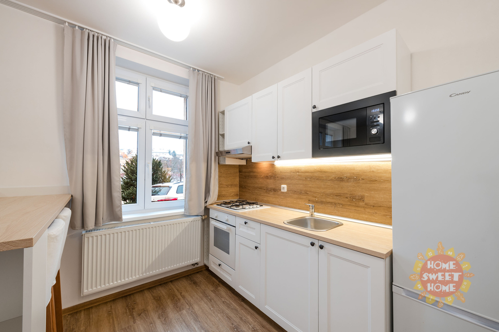 Rádi bychom Vám nabídli k pronájmu nezařízený byt 2kk (40 m2) po kompletní rekonstrukci, který se nachází v přízemí rodinné vily v ulici Plzeňská, Praha 5, Košíře. Dům prošel rekonstrukcí v roce 2020, nachází se na kopci nad Plzeňskou ulicí, tudíž se jedná o velice klidné bydlení. Byt byl kompletně zrekonstruovaný a nabízí: vstupní chodba s vestavěným věšákem a botníkem, obývací pokoj s kuchyňskou linkou, která je vybavená plynovým sporákem, trouba, lednice s mrazákem, mikrovlnka a digestoř, barový pul se židlemi, koupelna se sprchovým koutem, samostatná toaleta a komora. V domě je kotelna na vytápění. Možnost internetového připojení optickým kabelem (Cetina). Dům je na okraji lesa, jehož součástí je přírodní památka Skalka, ideálním místem na procházky a odpočinek. Výborná dopravní dostupnost - 3 minuty na stanici tramvají a autobusů, 4 stanice na metro "B" Anděl, kde se nachází velké nákupní centrum. V okolí veškerá občanská vybavenost (spousta restaurací, obchodů, lékárna). Byt je vhodný pro 1 osobu.