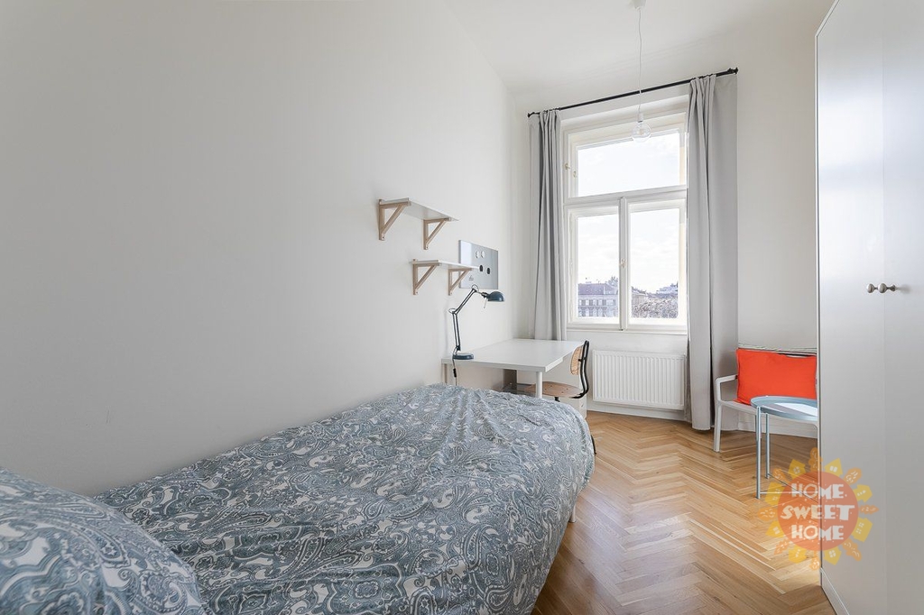 Krásný, zařízený pokoj 11m² se společnou, zařízenou kuchyní s jídelním koutem, koupelny se sprchou a toaletou se nachází v Residenci Kinských ve třetím patře cihlového domu v ulici nám.Kinských, Praha 5. Dům prošel kompletní rekonstrukcí roku 2019. Pokoj i byt je kompletně zařízený, včetně žehličky, prkna a vybavení na úklid. Nachází se v 5 pokojovém bytě se 2 koupelnami a 2 toaletami. Úklid společných prostor je již zahrnut v ceně nájmu, a to jednou týdně. Společné prostory jsou kompletně vybaveny: pračka, myčka, trouba, mikrovlnná trouba, varná konvice, toaster, žehlička, vysavač, mop, varná deska, nádobí. Pokoj je vybavený jednolůžkovou postelí, pracovním stolem, skříní, přikrývkou a polštářem (bez ložního prádla). Internet a úklid společných prostor je již zahrnut v ceně nájmu, a to jednou týdně. Dále je také k dispozici zcela zdarma fitness, prádelna (na mince) a společná terasa. Dále je také k dispozici zcela zdarma fitness, prádelna (na mince) a společná terasa. Rezidence se nachází ve velice oblíbené lokalitě přímo v centru města a v těsné blízkosti zahrady ,,Kinských" a parku ,,Petřín". Výborná občanská vybavenost : obchodní centrum Anděl, Cinema City Nový Smíchov, školy, restaurace , bary a mnoho dalšího. Výborné dopravní spojení: 200m na tram. zastávku ,, Újezd", 10min chůze stanice metra Anděl nebo pět zastávek tram. na vlakové nádraží ,,Praha – Smíchov". Vhodné především pro studenty pro střednědobý pronájem. Dostupné k pronájmu od 2.2.2026.