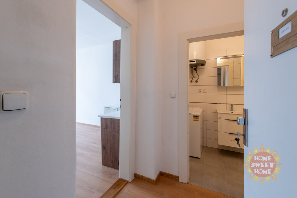 Nabízíme k pronájmu zařízený byt 1+kk o celkové ploše 22 m², který se nachází v 5. nadzemním podlaží cihlového domu s výtahem v ulici Hradešínská, Praha 10 – Vinohrady. Byt se skládá ze vstupní chodby, obytné místnosti s kuchyňským koutem, šatny a koupelny se sprchovým koutem a pračkou. Toaleta je samostatná. Byt prošel částečnou rekonstrukcí, včetně kompletně zrekonstruované koupelny. V pokoji je jednoduchá kuchyňská linka, lednice, postel a jídelní stůl. Byt je orientován na sever s výhledem do zahrad rezidenčního komplexu Korunní dvůr. Jedná se o velmi atraktivní lokalitu v klidném prostředí, a přitom v blízkosti centra města. Lokalita nabízí výbornou dopravní dostupnost – tramvajová zastávka Orionka je vzdálena jen pár minut chůze, obchodní centrum a stanice metra Flora (linka A) jsou v docházkové vzdálenosti. Byt je dostupný ihned k pronájmu.