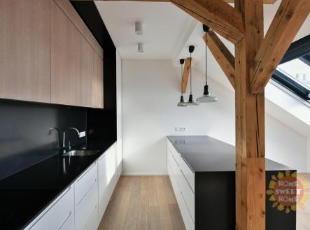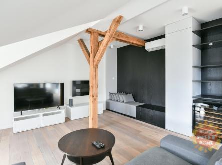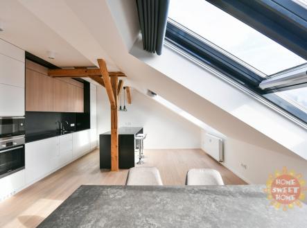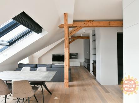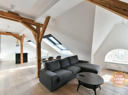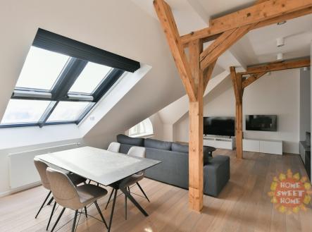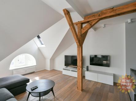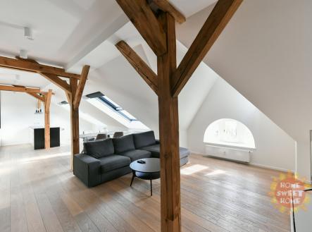 Praha, zařízený půdní byt 3+kk (156 m2) k pronájmu, klimatizace, Náměstí Jiřího z Poděbrad