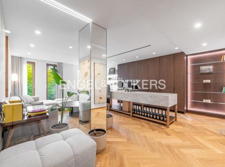 Nabízíme k pronájmu jedinečný kompletně zařízený byt v prestižní rezidenci Villa Bianca, situovaný v srdci pražského Bubenče. Tento byt spojuje komfortní bydlení v klidné privátní rezidenci s vynikající dostupností do centra města. Byt s dispozicí 2+kk a výměrou 87 m² je pečlivě navržený do posledního detailu. Najdete zde prostorný obývací pokoj propojený s plně vybavenou kuchyní, samostatnou toaletu pro hosty, walk-in šatnu, koupelnu se sprchovým koutem a toaletou a komfortní ložnici. Design interiéru vytvořilo renomované architektonické studio, které kladlo důraz na maximální využití prostoru. V každé místnosti jsou vestavěné skříně a další úložné prostory, které dokonale ladí s elegantním a nadčasovým stylem bytu. Každý prvek v interiéru byl pečlivě vybrán tak, aby odpovídal nejvyšším standardům současného bydlení. Byt je vybaven na míru zhotoveným nábytkem, prémiovými masivními dřevěnými parketami a klimatizací pro maximální pohodlí. Díky preciznímu zpracování a použití vysoce kvalitních materiálů nabízí tento byt úroveň bydlení, která je zcela výjimečná. Rezidence Villa Bianca se řadí mezi jednu z nejoblíbenějších adres v Bubenči. Nachází se v těsné blízkosti oblíbeného parku Stromovka a je obklopena mnoha ambasádami a vilami. Celý areál je přístupný pouze rezidentům, kterým je k dispozici recepce a 24/7 ostraha. K bytu náleží parkovací stání v podzemních garážích.