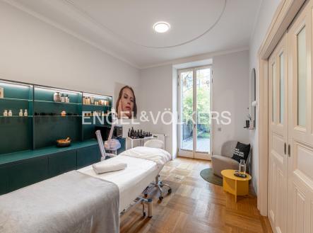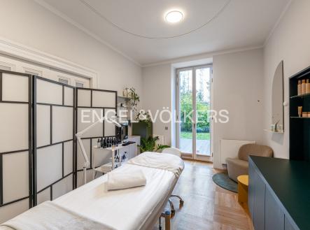 Prémiový komerční prostor s vlastní terasou a předzahrádkou se rozkládá v nejnižších podlažích reprezentativní rezidence. Tento kompletně zrekonstruovaný vinohradský dům, situovaný v atraktivní lokalitě poblíž náměstí Jiřího z Poděbrad, nabízí prémiové bydlení i prostor pro podnikání. Komorní dům disponuje podzemními garážemi, a proto je součástí prodeje možnost dokoupení jednoho garážového stání v zakladači a až dvou sklepních kójí. Jednotka o vnitřní užitné ploše 108 m² má vstup z reprezentativních společných prostor a je výjimečná svými velkými okny, která se táhnou ze suterénní úrovně až do přízemí, čímž zajišťují dostatek světla. Prostor, který je po rekonstrukci a disponuje dřevěnými okny a podlahami a vlastním plynovým kotlem, je aktuálně využíván jako kosmetické studio s vlastní recepcí, hygienickým zázemím, relaxačními místnostmi a kuchyňkou. V přízemní úrovni se nachází recepce, koupelna se sprchovým koutem a toaletou a dvě místnosti s francouzskými okny, ze kterých se vstupuje na klidnou terasu s předzahrádkou (26 m²). Přes vzdušnou galerii se schodištěm se vchází do spodní (suterénní) úrovně, kde se rozkládá showroom a kuchyňka s toaletou pro personál. Ke komerční jednotce je možné koupit také mezonetový byt 4+kk v nejvyšším podlažím domu, který má velikost 120 m2 a terasu s příjemným výhledem.