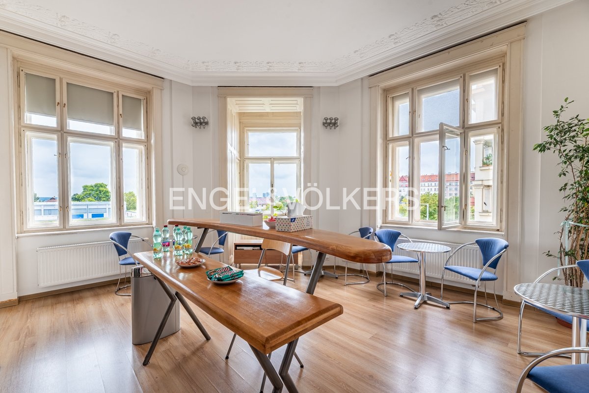 K pronájmu jsou od 1. dubna 2026 k dispozici reprezentativní kancelářské prostory ve 3. nadzemním podlaží stylové vily na Vinohradech. Prostory jsou ve výborném stavu a díky velkým špaletovým oknům působí mimořádně světlým a vzdušným dojmem. Součástí zázemí je moderní kuchyňka, serverová místnost a oddělené toalety, samozřejmostí je klimatizace i dálkové vytápění. Budova disponuje výtahem a umožňuje nepřetržitý přístup 24/7/365, což zajišťuje maximální flexibilitu. Výhodou tohoto patra je také samostatná školící místnost, která rozšiřuje možnosti využití a nabízí ideální prostředí jak pro každodenní práci, tak pro meetingy a prezentace. Spojení historického kouzla vily s moderními technologiemi vytváří reprezentativní pracovní zázemí, vhodné i pro náročné klienty. Minimální délka nájemní smlouvy je stanovena na tři roky. V případě dalších informací či sjednání prohlídky jsem Vám k dispozici.