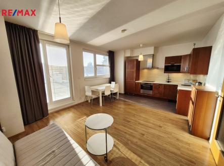 Příjemný světlý byt 1+kk 34 m2 s velkou terasou 41 m2/ možnost garážového stání a sklepa
