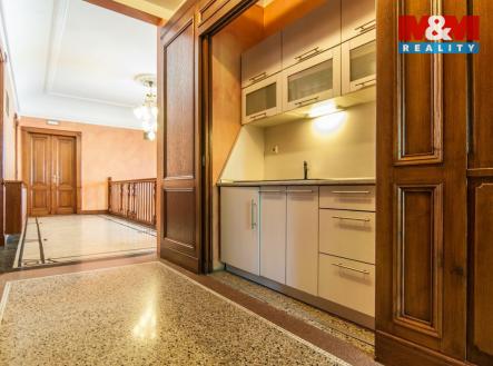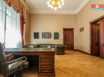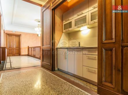 Hledáte reprezentativní sídlo firmy? Nabízíme k prodeji vyjímečnou nemovitost v Praze 5 v těsné blízkosti nákupního centra Anděl. Nemovitost původně patřila baronce Ringhoffer, manželce známého majitele strojírenského podniku v Praze.V roce 2007 objekt kompletně zrekonstruován a přestavěn na kanceláře s bytem a garáží pro majitele. V přízemí se nachází okázalá vstupní hala, recepce, 4 kanceláře, kuchyňka, sociální zařízení, místnost pro servery, úklidová místnost. Do patra se vchází po širokém dřevěném schodišti. Nachází se zde galerie, hlavní ředitelská kancelář, jednací místnost, 5 kanceláří, kuchyňka a sociální zařízení. V podkroví byl vybudován pohodlný komfortní byt dispozičně upraven na obývací pokoj spojený s kuchyní, 2 ložnice, 2 koupelny a 2 toalety. Vstup je umožněn po schodišti. Celý objekt chrání bezpečnostní systém. Parkovací místa jsou před budovou. Informace o této jedinečné secesní stavbě u makléře