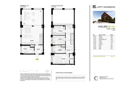 Nabízíme k prodeji luxusní byt ateliérového typu s dispozicí 4+kk o celkové výměře 144,21 m2. Jde o zcela jedinečnou dispozici velkého bytu s velkými okny v každé místnosti a prostorností danou loftovým řešením. Byt je vybaven rekuperací, klimatizační jednotkou, podlahovým topením a předokenními žaluziemi. V tomto loftovém bytě si můžete splnit svůj sen o unikátním bydlení. Vysoké industriální stropy a velká okna s ohromujícím výhledem ve vás vyvolají pocit výjimečnosti. Skvělá dopravní dostupnost a blízkost centru hlavního města činí tento byt ještě atraktivnější. Přímo naproti je komplex Pragovka, nabízející jak kulturní, sportovní tak kulinářské vyžití. Skoro za rohem se nacházejí obchodní centra jako Fénix a Galerie Harfa. Pro fanoušky sportovních zápasů a velkých koncertů ideální bydlení v blízkosti O2 arény a zároveň blízkosti přírody jako Klíčovské sady. Byt je k dispozici ihned, jedná se o nově dostavěný developerský projekt Lofty Kolbenova. Pro více informací o objektu a jiných dispozic bytů/ateliérů mě prosím kontaktujte.