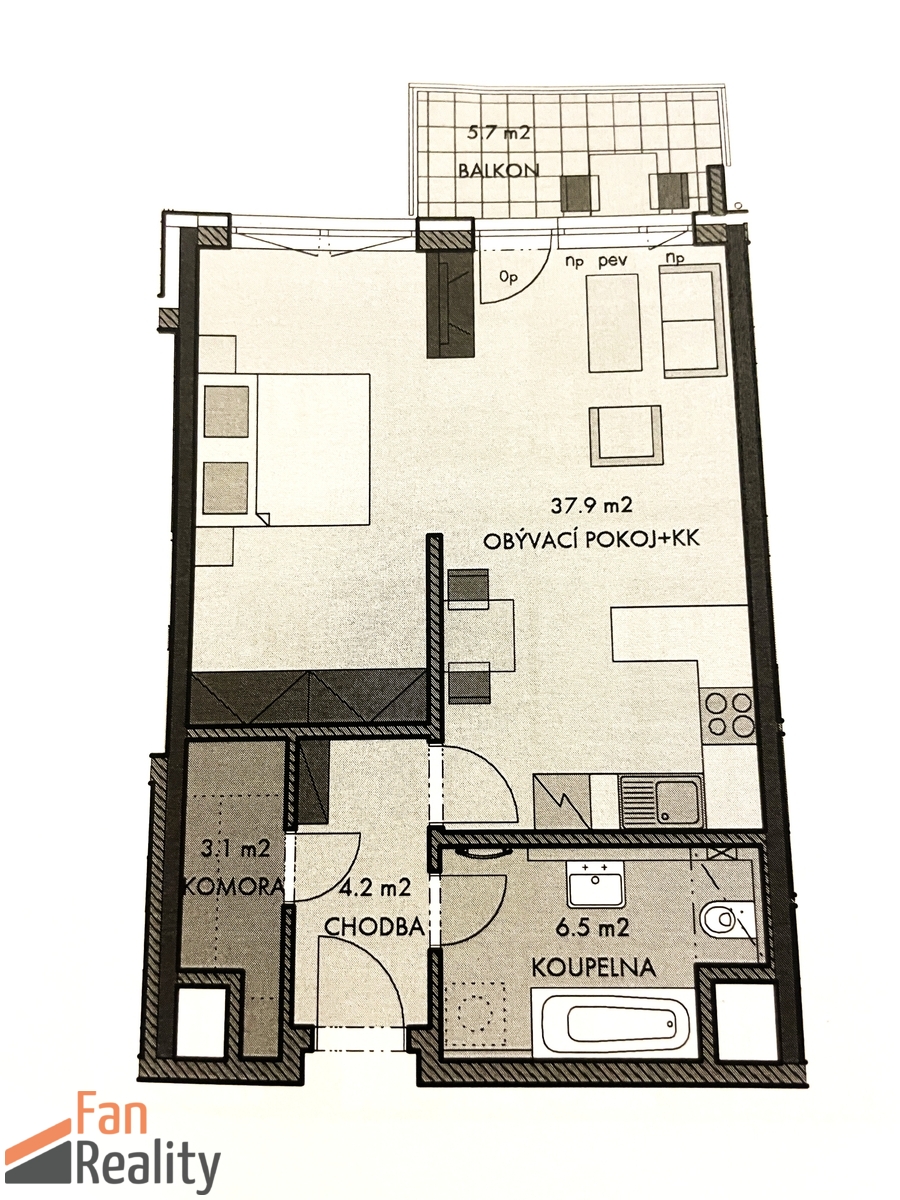 Prodej BJ 2+kk s balkónem a parkovacím stáním