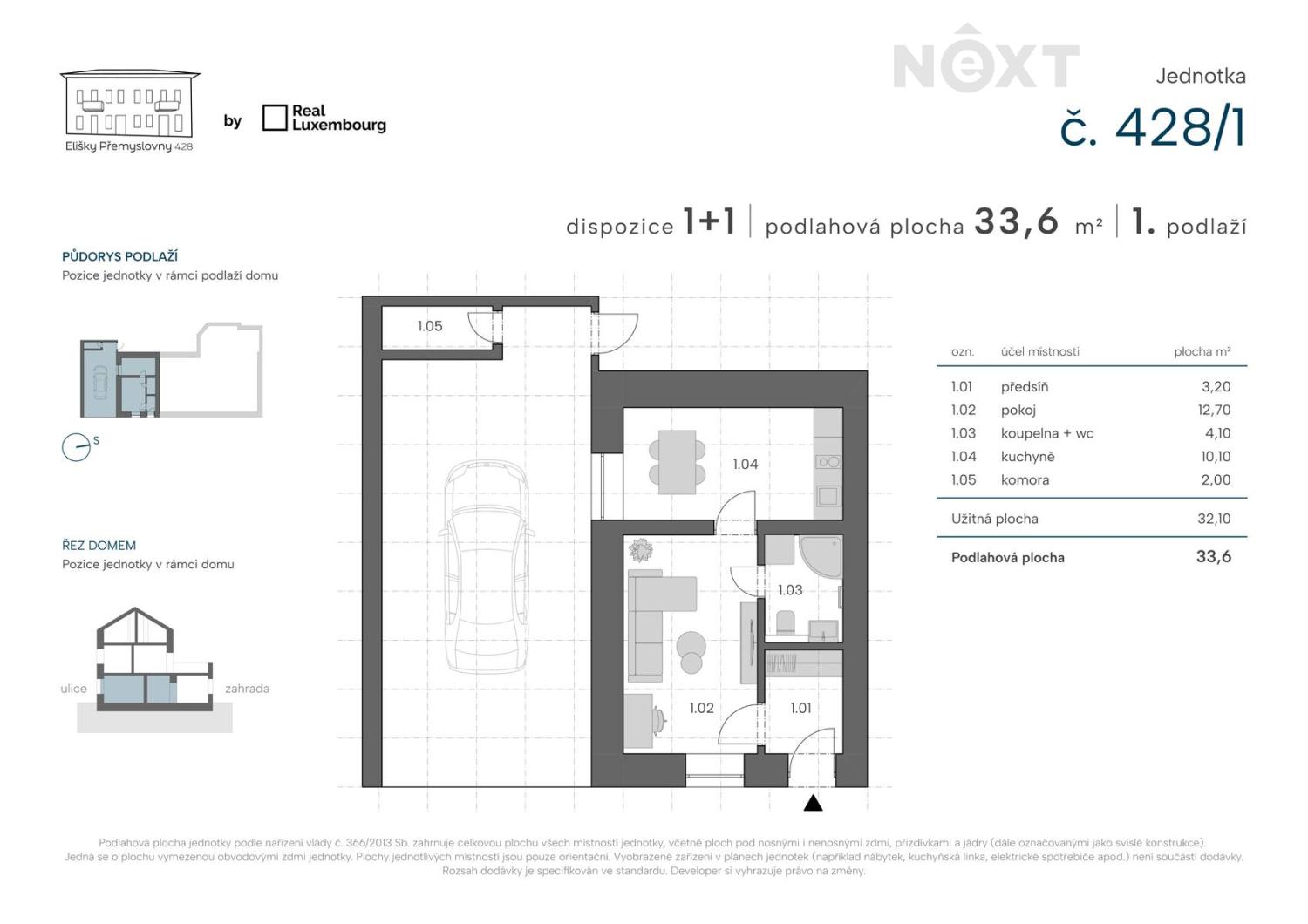 Moderní 1+1 (32 m²) po kompletní rekonstrukci v klidné lokalitě. Hledáte klidné bydlení, kde se historie snoubí s moderní architekturou v dosahu všeho potřebného? Nabízíme k prodeji světlou a útulnou jednotku s dispozicí 1+1 o celkové ploše 32 m² situovanou v 1. nadzemním podlaží kompletně zrekonstruovaného domu v klidné rezidenční lokalitě. Dispozičně jednotka nabízí obývací pokoj, kuchyň s přípravou pro kuchyňský kout, koupelnu se sprchovým koutem a toaletu. K bytu přináleží velkorysé parkovací stání o ploše 29 m² spolu se zahradním domkem o ploše 2 m². Jednotka je ihned k nastěhování! Dům a jednotky prochází celkovou rekonstrukcí - nové rozvody elektřiny, vody, vinylové podlahy, dlažba, vchodové dveře, fasáda, zateplení střechy, plastová okna s dvojskly, topení pomocí elektrických přímotopů, ohřev vody je zajištěn elektrickým bojlerem. Zachováno zůstává původní kamenné schodiště i historické klenby, které domu dodávají osobitý charakter. Bytový dům je nedaleko centra Zbraslavi, což je klidná a vyhledávaná městská část na jihu Prahy, která kombinuje pohodové bydlení v zeleni s výbornou dostupností do centra metropole. Tato lokalita nabízí ideální zázemí pro rodiny s dětmi, seniory i všechny, kdo hledají únik od ruchu města, aniž by se museli vzdát výhod městského života. Oblast je obklopena přírodou – v blízkosti se nachází lesy, cyklostezky podél Vltavy, Zbraslavský zámek a oblíbená ZOO Zbraslav. K občanské vybavenosti patří školky, školy, lékařská zařízení, pošta, obchody, restaurace a sportovní areály. Velkou výhodou je také rychlé spojení do centra Prahy – autem, MHD i vlakem (např. z nádraží Zbraslav nebo přes autobusové spojení na metro Smíchovské nádraží). Vhodné pro jednotlivce nebo pár. Ideální i jako investice. Pro komunikaci uvádějte evidenční číslo zakázky N113540.