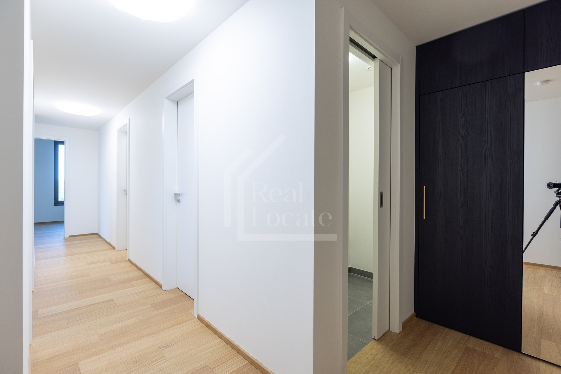 Představujeme Vám prodej moderního bytu 3+kk o podlahové ploše 80 m² s balkonem o velikosti 9 m², který se nachází v novostavbě čtvrté etapy oblíbeného projektu Zelené město v pražské části Hrdlořezy. Lokalita je obklopena přírodou – v bezprostřední blízkosti se nachází rozlehlý park s rybníkem, les a stezky podél řeky Rokytky, ideální pro procházky i aktivní odpočinek. Projekt nabízí klidné bydlení s výbornou dopravní dostupností do centra Prahy. Byt byl navržen architektem s důrazem na funkčnost a estetiku. Interiér je vybaven moderní kuchyní na míru s vestavnými spotřebiči, kvalitními vestavěnými skříněmi a dostatkem úložného prostoru. Z prostorného obývacího pokoje je vstup na balkon orientovaný na severovýchod. Dispozice dále zahrnuje samostatnou toaletu pro hosty a praktickou komoru, které zvyšují komfort bydlení. K bytu náleží dvě parkovací stání v garáži domu (cena 700 000 Kč), které je nutné zakoupit současně s bytem. Součástí prodeje je rovněž sklepní kóje. Pokud hledáte komfortní, moderní a reprezentativní bydlení v novém projektu s krásně upraveným vnitroblokem plným zeleně a perfektní dopravní dostupností, pak je tato nabídka ideální volbou. Pro více informací nás neváhejte kontaktovat.