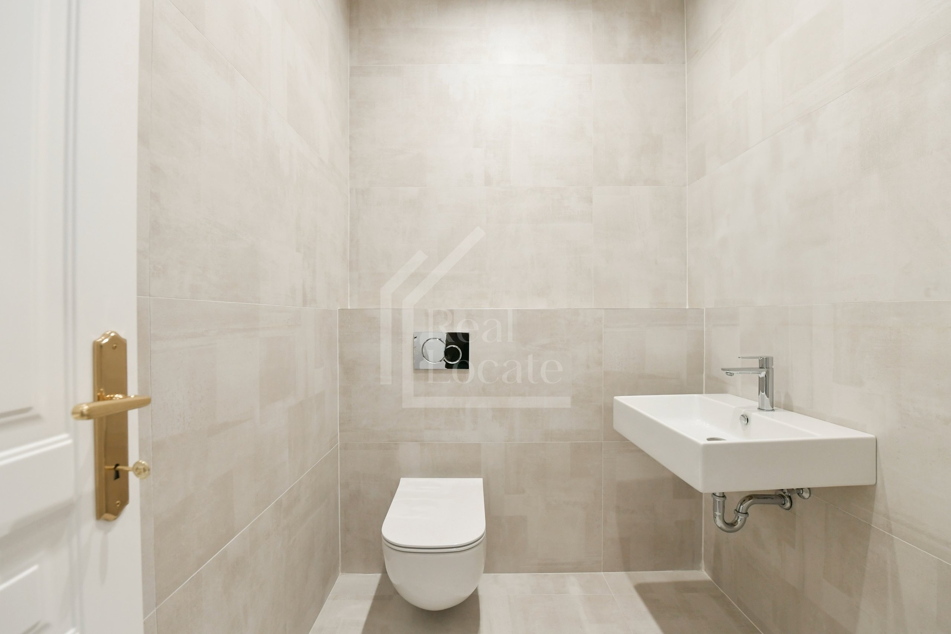 Jsme potěšeni, že vám můžeme nabídnout k pronájmu jedinečný byt o dispozici 2+kk s celkovou podlahovou plochou 97,5 m², který se nachází ve zvýšeném přízemí elegantního, zrenovovaného historického domu ve vyhledávané rezidenční lokalitě Vinohrady. Interiér vznikl ve spolupráci s italskými architekty a spojuje moderní městské bydlení s respektem k původní architektuře, vysoce kvalitním materiálům a nadčasovému designu. Dispozice zahrnuje prostornou vstupní halu, samostatnou toaletu, koupelnu s mramorovým obkladem a walk-in sprchou a světlý obývací pokoj s kuchyňským koutem a jídelní částí, který tvoří srdce celého bytu. Hlavní ložnice je orientována do tichého vnitrobloku a nabízí dostatek prostoru i soukromí – ideální pro domácí pracovnu, šatnu nebo čtecí koutek. Dispozici doplňuje druhá ložnice, která poskytuje flexibilitu pro rodinu, hosty nebo další pracovní prostor. Interiér se vyznačuje vysokými stropy, velkými kastlovými okny a kvalitními dřevěnými podlahami, které dodávají bytu charakter a eleganci. Byt se nabízí nezařízený, s vysoce kvalitními koupelnovými zařizovacími předměty a prémiovými povrchy v celém prostoru. Vinohrady patří k nejžádanějším pražským čtvrtím, známým svou kultivovanou atmosférou, množstvím zeleně a živou kavárenskou i kulturní scénou. V pěší vzdálenosti se nacházejí oblíbené parky Riegrovy sady a Havlíčkovy sady, stejně jako množství restaurací, butiků, galerií a vynikající dopravní spojení do centra města. Pro více informací prosím kontaktujte realitního makléře.