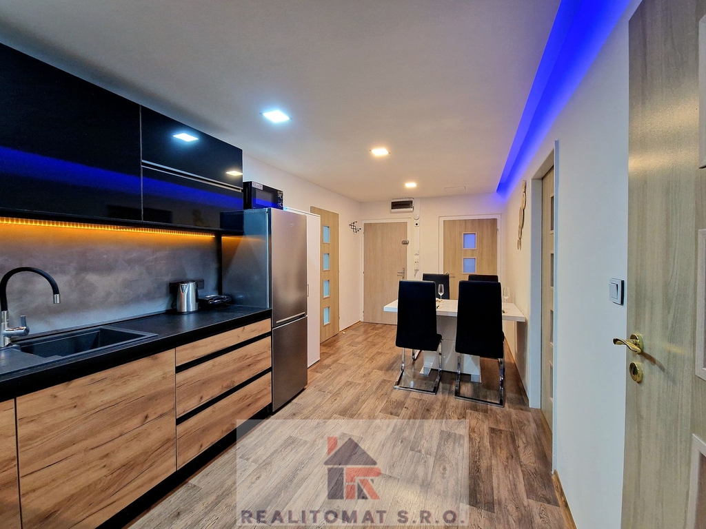 Nabízíme k prodeji nově zrekonstruovaný byt o dispozici 4kk v přízemí klidného panelového domu, který je vzdálen 3 minuty od metra Háje. Byt byl zkolaudován v roce 2012, ale v katastru nemovitostí je stále evidováno jako - jiný nebytový prostor. ( možno řešit a evidovat jako byt ) Byt je možné financovat hypotečním úvěrem, který pro Vás zařídíme. Okna jsou orientována do klidného parku. Na oknech jsou bezpečnostní mříže. Dvě samostatné ložnice a obývací pokoj s možností rozložení pohovky na postel - třetí ložnice. Ambientní osvětlení a podhledy. Nízké měsíční poplatky. Wellness prostorná koupelna s vířivou hydromasaní vanou pro 2 osoby, led, sauna, sprchový kout. Byt je v prvním nadzemním podlaží budovy, ale jde se po schodech dolů, dům je v mírném svahu. Výhled do klidného zeleného parku. Byt je velmi klidný, žádní přímí sousedé.