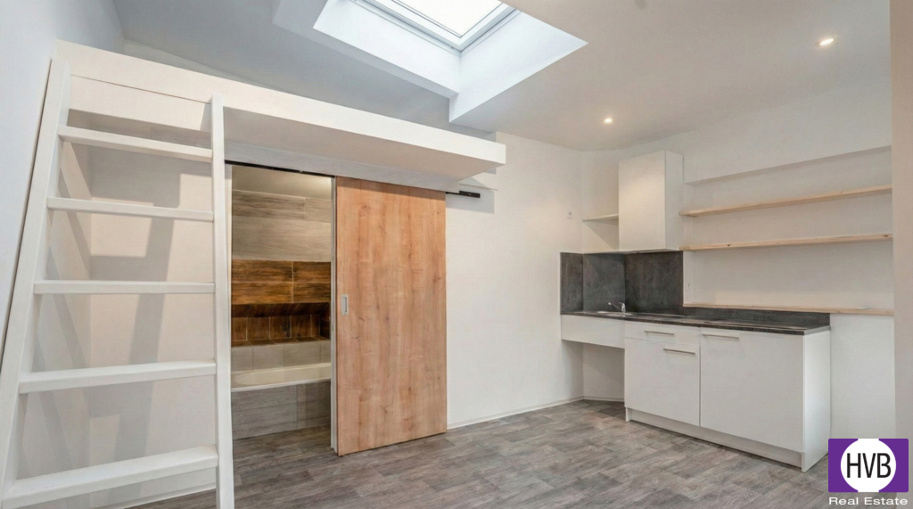 Nabízíme na prodej byt o celkové velikosti 20 m2 dispozice 1+kk (16 m2 + 4,5 m2 patro na spaní), v osobním vlastnictví, v lokalitě Praha 3 - Žižkov, ul. Husitská. V jednotce se nachází kuchyňský kout, koupelna s WC a sprchovým koutem (vanou), místo na skříně a stůl, dále spací patro o velikosti 4,5 m2. Byt se nachází v přízemí domu, který prošel kompletní revitalizací, okno je střešní + dveře jsou částečně prosklené, vytápění je řešené pomocí ekonomicky nenáročné klimatizační jednotky. Vzhledem k vysoké poptávce po nájemních bytech, doporučujeme i jako zajímavou investiční příležitost (dlouhodobé či krátkodobé pronájmy). V okolí je kompletní občanská a kulturní vybavenost i výborná dopravní dostupnost. V případě zájmu či dotazů neváhejte kontaktovat makléře i během víkendu.