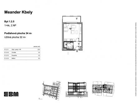 Vstupte do nového domova Meander Kbely, kde se nachází byt 1.2.5 o podlahové ploše 32 m2 – místo, které spojuje moderní architekturu, útulnost a harmonii s přírodou. V projektu se nachází 96 bytů o dispozicích od 1+kk až po prostorné 4+kk. Projekt nese své jméno po meandru nedalekého potoka, jehož klidný rytmus se promítl do architektonického řešení. Budovy jsou zasazeny do zeleně, nabízejí otevřené prostory a přirozené splynutí s okolní krajinou – ideální prostředí pro klidný život i aktivní odpočinek. Kbely jsou čtvrtí, kde se snoubí výborná dostupnost s každodenním komfortem. Díky kompletní občanské vybavenosti, infrastruktuře a rychlému spojení do centra Prahy je tato lokalita ideální volbou pro rodiny, páry i jednotlivce. Objevte bydlení, kde se dynamika velkoměsta setkává s klidnou atmosférou přírody. Váš nový životní rytmus začíná v Meander Kbely. Navštivte webové stránky developera projektu EBM Group pro více informací.