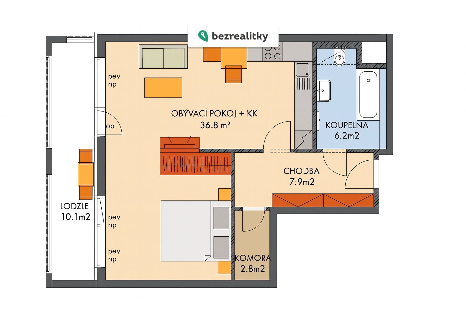 Nabízíme k převodu práva nájmu prostorného družstevního bytu o dispozici 2(1)+kk s možností úpravy na plnohodnotné 2+kk, který se nachází ve 4. nadzemním podlaží moderní novostavby z roku 2023 v ulici Gollové v pražských Hlubočepích (Praha 5). Byt je součástí projektu renomovaného developera FINEP. Podlahová plocha bytu činí 55,9 m² a již v aktuální dispozici poskytuje komfortní prostorové řešení. Hlavní obytná místnost umožňuje variabilní uspořádání, lze v ní jednoduše vyčlenit plnohodnotnou ložnici či pracovnu bez výraznějších stavebních zásahů. Velkým benefitem je prostorná lodžie o velikosti 10,1 m² orientovaná do klidnější části domu. Součástí předmětu nájmu je také kryté garážové stání umístěné v podzemním podlaží domu a komora o velikosti 4,90 m². Komora je přístupná přímo z garážového stání. Garážové stání je širší (označeno jako invalidní), vhodné i pro větší vůz nebo motorku. Financování formou anuity představuje zajímavou alternativu k hypotéce. Nesplacená anuita k 1. 11. 2025 činí přibližně 4,2 mil. Kč s pevně sjednaným úrokem 3 % p.a. a pětiletou fixací, což je v současnosti výrazně výhodnější než běžné hypoteční sazby. Měsíční splátka anuity činí 20.493 Kč, měsíční zálohy na služby pak 7.772 Kč. Velkou výhodou je i flexibilita, anuitu lze jednorázově doplatit, přičemž družstvo umožňuje provádět mimořádné splátky dvakrát ročně (k 30. 4. a 31. 10.). Po úplném doplacení anuity družstvo podle svých stanov standardně umožňuje převod bytu do osobního vlastnictví. Samotný převod členských práv podléhá pouze běžnému schválení družstva a je zpoplatněn administrativním poplatkem 25 000 Kč. Lokalita Hlubočepy nabízí výjimečné spojení městského komfortu s blízkostí přírody. V docházkové vzdálenosti se nachází základní i mateřská škola přibližně deset minut chůze, stejně jako menší obchodní centrum a každodenní služby dostupné do pěti až osmi minut. Větší nákupy je možné pohodlně vyřídit v hypermarketu Kaufland, který se nachází zhruba patnáct minut chůze od domu. Pro volnočasové aktivity je v dosahu okraj Prokopského a Dalejského údolí (do dvanácti minut chůze) a koupaliště vzdálené přibližně pět kilometrů. Energetická náročnost budovy spadá do úsporné třídy B. Tato nemovitost je určena výhradně přímým zájemcům o koupi. Na inzerát můžete také reagovat přímo na webu Bezrealitky: https://www.bezrealitky.cz/nemovitosti-byty-domy/948786-nabidka-prodej-bytu-gollove-praha