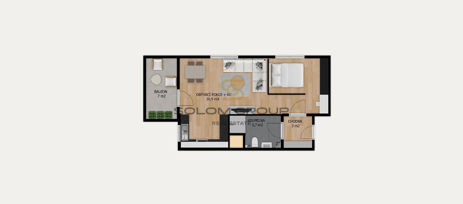 Prodej nového rohového bytu 1+kk, 46,2 m² (byt o výměře 39,2 m² + balkon o výměře 7 m²), který se nachází ve 2. NP cihlové novostavby v Rezidenci Nad Krocínkou III, Praha 9 – Prosek. Jedná o družstevní byt, nepotřebujete hypoteční úvěr a cenu bytu splácíte formou splátek v měsíčních poplatcích („měsíční splátka anuity“) Splácet začínáte až po kolaudaci domu, do té doby nic neplatíte. Byt Vám je předán hotový vč. zařízené koupelny (umyvadlo, vana nebo sprchový kout, topný žebřík a závěsné WC) dále interiérové dveře, plastová okna, nové rozvody vody, elektřiny a odpadů, příprava pro kuchyňskou linku, protipožární vchodové dveře, obklady a dlažba. Je možno také využít dotaci na výběr podlahové krytiny ve výši 500 Kč/m2. Akontace za byt: 2.490.000,- Kč Anuita k bytu: 4.629.365,- Kč Splátka anuity: 25.458,- Kč Možnost vložení mimořádné splátky či doplacení celé výše anuity a byt převézt do osobního vlastnictví. Výborná dopravní dostupnost, 6 min. chůzí metro C, zast. Prosek nebo 15 min. chůzí metro C, zast. Letňany. V blízkosti domu se nachází Billa Prosek (Lékárna, Pizzerie, Mcdonald´s apod.) nebo Park Přátelství či Prosecké skály. V dojezdové vzdálenosti se nachází OC Letňany, Aquacentrum Lagoon nebo Ice Arena Letňany. Lokalita je vhodná jak k vlastnímu bydlení, tak za účelem pronajímání. K bytu přísluší balkon o výměře 7 m². Termín dokončení - konec roku 2026 Vizualizace jsou pouze ilustrativní.