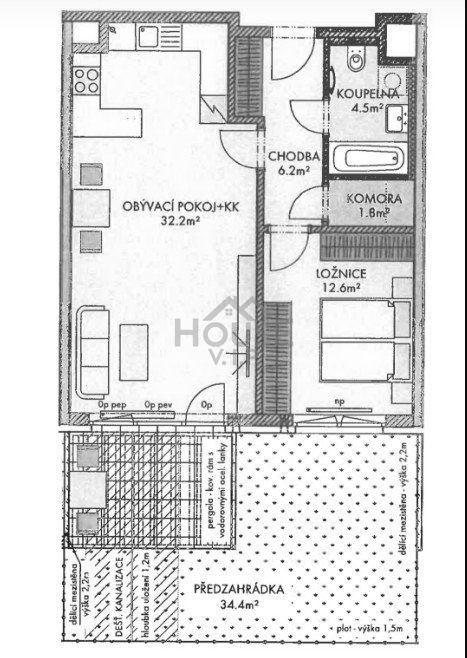 Prodej bytu 2+1, 57,3 m2 s předzahrádkou 34,4,m2, Praha 6 - Ruzyně.