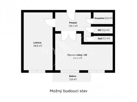 K prodeji nabízíme byt ke kompletní rekonstrukci o dispozici 2+1 a užitné ploše 57,3 m², který se nachází v Praze 10 - Strašnice, v ulici Černokostelecká. Díky tomu, že v bytě není ani jedna nosná příčka, nabízí se široké možnosti změny dispozice. Velmi jednoduše lze odstraněním příčky vytvořit 2+kk. Spojením kuchyně a menšího pokoje by tak vznikl obývací pokoj s kk - cca 23 m². Pro inspiraci jsme vytvořili vizualizace do reálných fotek a záběrů bytu, které najdete v galerii a ve videoprohlídce. Rozsáhlejší rekonstrukcí by šlo vymyslet i dispozici 3+kk. Aktuální dispozici 2+1 tvoří: - chodba 10,7 m² - pokoj 18,6 m² - pokoj 13,4 m² - kuchyň 9,1 m² - koupelna 2,6 m² - WC 1,2 m² - spíž 1,7 m² - balkon 1,6 m² - sklep 2 m² Byt se nachází ve 2. patře cihlového domu bez výtahu. SVJ hospodaří velmi dobře a plánuje zateplení, opravy balkónů apod. Nemovitost je vhodná jak pro vlastní bydlení, tak i jako investice pro ty, kteří hledají byt s jasným potenciálem a možností výrazného zhodnocení po rekonstrukci. Ať už byste byt plánovali koupit pro sebe, či na investici, je potřeba počítat s tím, že se nachází na rušné křižovatce ulic Černokostelecká a Limuzská, kde je velký provoz. Zároveň je ale potřeba dodat, že zastávka MHD Limuzská je jen pár kroků od domu, takže dostupnost do centra i dalších částí města je velmi dobrá. Další výraznou výhodou je velký, zelený a klidný vnitroblok, který poskytuje příjemný kontrast k okolnímu ruchu. Nemovitost je v osobním vlastnictví a lze ji tedy financovat hypotečním úvěrem, který Vám zdarma pomůžeme vyřídit za nejvýhodnějších podmínek na trhu. PENB nebyl dodán, proto prozatím uvádíme třídu G. Pro více informací nebo domluvení prohlídky nás neváhejte kontaktovat.