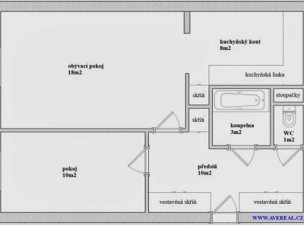 Prodej bytu o velikosti 2+kk (cca 50m2), ul. Janovská, Praha 15 – Horní Měcholupy Nabízíme k prodeji byt v osobním vlastnictví o dispozici 2+kk a celkové ploše cca 50 m², který se nachází ve zvýšeném přízemí panelového domu s výtahem. Byt je v dobrém stavu, má plovoucí podlahy, plastová okna, vestavěné skříně a původní umakartové jádro. Součástí je také sklep o velikosti cca 1 m². Orientace bytu je na východ. Dispozice: obývací pokoj s kuchyňským koutem (cca 26 m2), ložnice (10 m2), předsíň (10 m2), koupelna (3 m2) a samostatné WC (1 m2). Měsíční náklady pro jednu osobu činí cca 3.300 Kč (zálohy na vodu, teplo, fond oprav, správní poplatky, odvoz odpadu, pojištění domu, provozní režie) + elektřina cca 750 Kč a plyn cca 280 Kč. Dům je čistý a udržovaný, v blízkosti se nachází Hostivařská přehrada a lesopark. Lokalita nabízí kompletní občanskou vybavenost – mateřská a základní škola, zdravotní středisko, pošta, lékárna, obchody, sportovní areál, dětské hřiště i kulturní středisko. Metro je dostupné cca 10 minut. Parkování v okolí je bezproblémové. Byt je ihned volný k nastěhování. Je vhodný jak pro rodinu s dětmi, tak jako investice k pronájmu. Dalších cca 20 doplňujících informací, plánek, fotografie a videa bytu Vám rádi zašleme e-mailem.