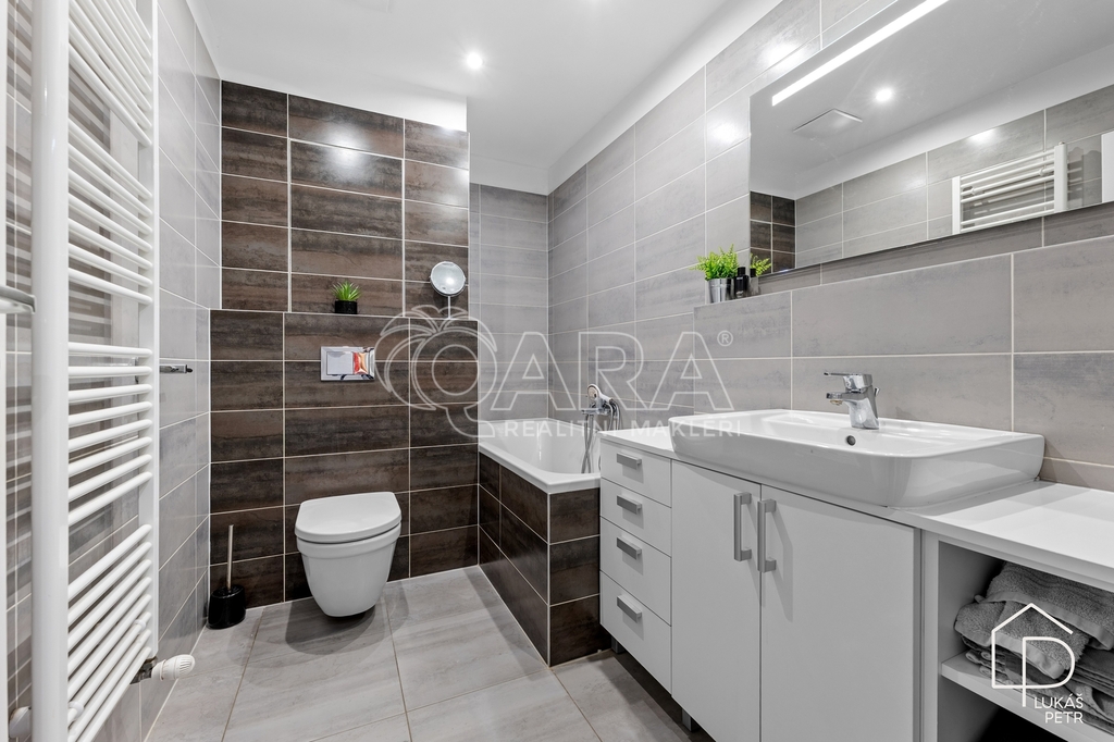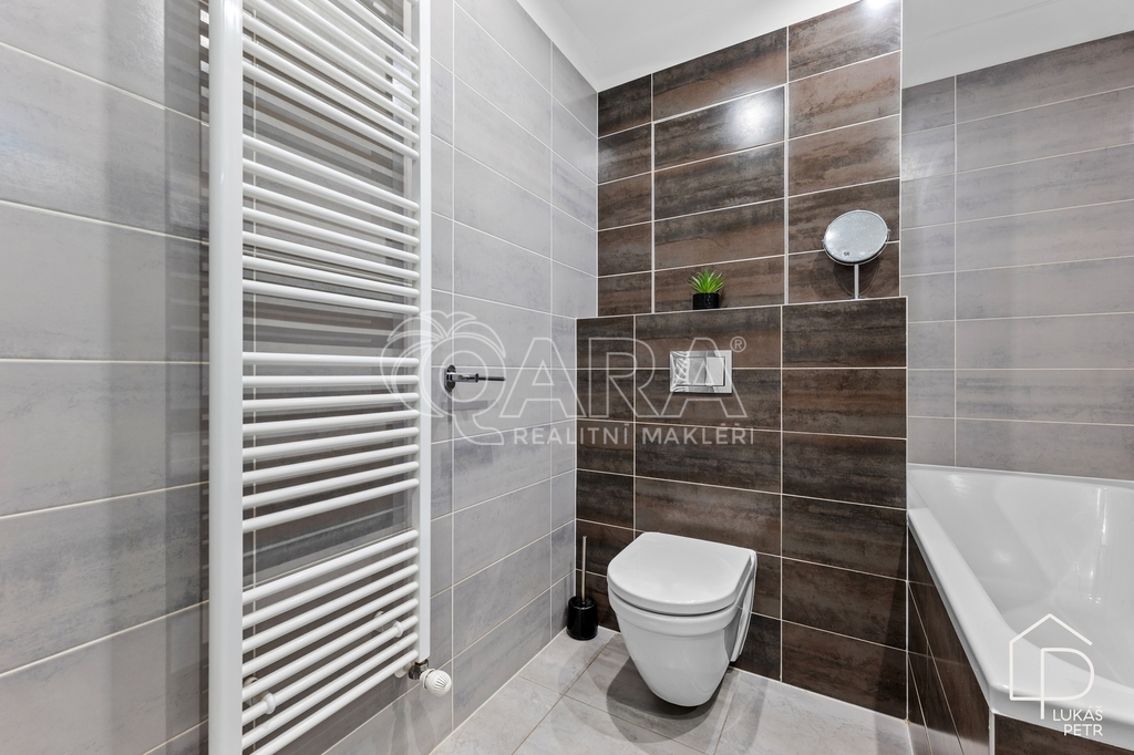 Byt 2+kk v domě z roku 2017 s lodžií, sklepem a vlastním venkovním parkovacím stáním. Nachází se ve vyvýšeném přízemí a je orientovaný na západ. Ulice před domem je slepá a slouží primárně pro rezidenty, provoz je tedy minimální a byt působí klidněji, než by člověk u Prahy čekal. Podlahová plocha je 51,7 m2. Dispozice je přesně taková, jaká má u 2+kk být – obývací pokoj s kuchyňským koutem, samostatná ložnice, koupelna s WC a komora přímo v bytě. Úložné prostory jsou řešené nejen sklepem, ale i komorou, která v podobných dispozicích často chybí. Stav bytu je výborný. Dům má výtah a energetická náročnost budovy je třídy B. Uhříněves je praktická lokalita pro každodenní život – v místě je kompletní vybavenost a zároveň rychlé napojení na dopravu. Vlakem jste na Hlavním nádraží zhruba za 17 minut a autem jste na D1 do několika minut. V okolí jsou také lesoparky a kousek i letní bazén. Pro více informací mě neváhejte kontaktovat. Budu se těšit na prohlídkách, Lukáš Petr