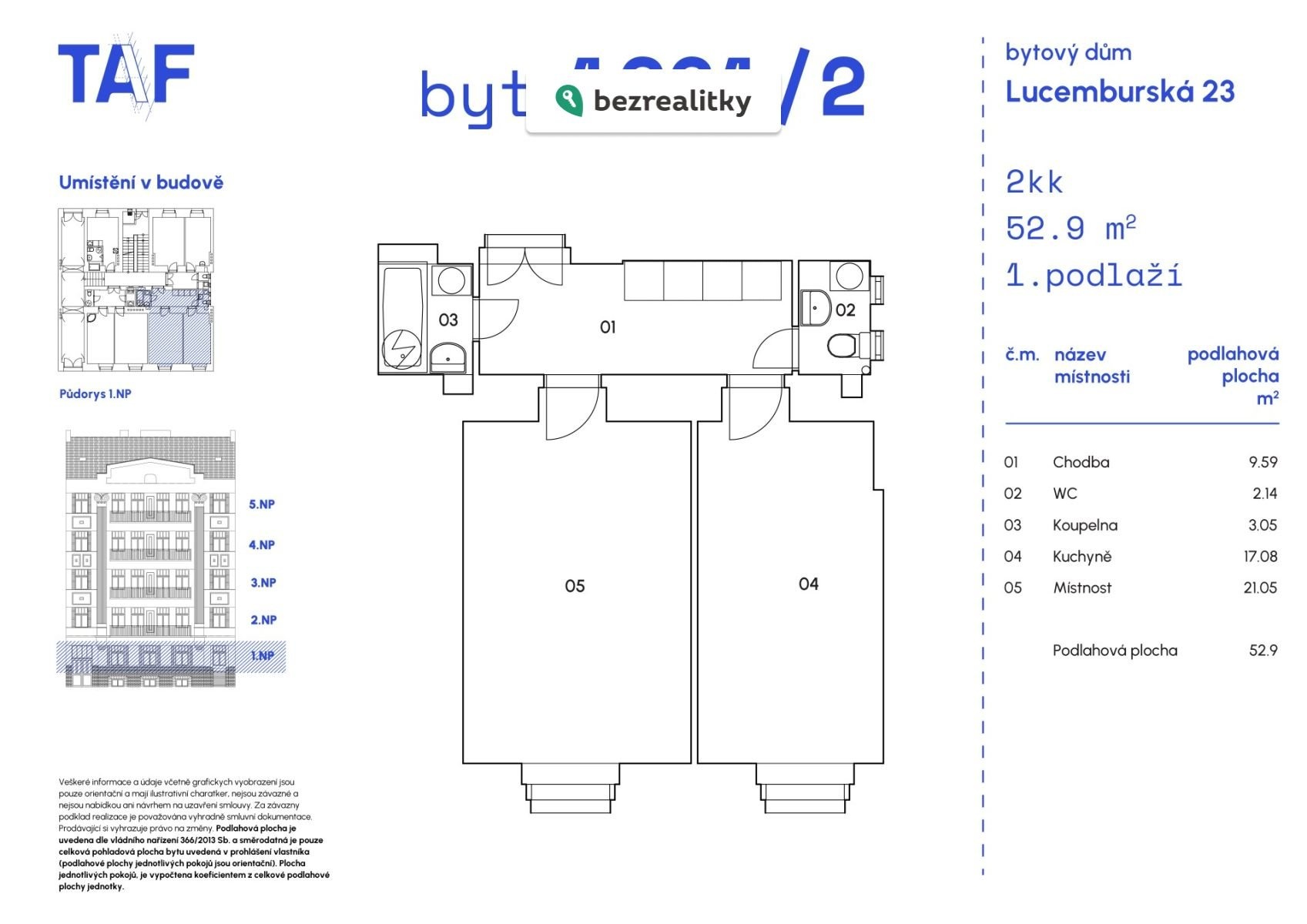 Nabízím k prodeji útulný byt 2+kk o velikosti 52,9 m2, který se nachází v prvním podlaží a vyznačuje se velmi dobrým stavem, což umožňuje okamžité nastěhování bez nutnosti dalších větších úprav. Je vybaven velmi pěknou kuchyní. Byt se nachází v tradiční cihlové budově, která se nachízí jen pár minut chůze od metra A Flora a obchodního centra Lokalita Žižkov, kousek od Vinohrad, vzhledem k lukrativní lokalitě je vhodný jak na bydlení, tak investici. V případě zájmu o více informací nebo prohlídku mě, prosím, neváhejte kontaktovat. Tato nemovitost je určena výhradně přímým zájemcům o koupi. Na inzerát můžete také reagovat přímo na webu Bezrealitky: https://www.bezrealitky.cz/nemovitosti-byty-domy/964706-nabidka-prodej-bytu-lucemburska-praha