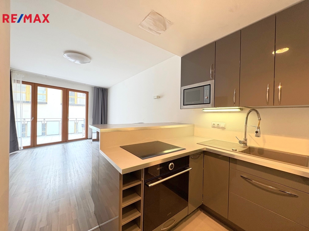 Exkluzivní nabídka prodeje příjemně řešeného bytu 2+KK o vnitřní velikosti 54 m2 (zkolaudovaného jako atelier) s velkou terasou (20 m2), který je situovaný v klidné části Prahy 9 - Libeň, v ul. Kurta Konráda. Nemovitost je umístěna ve 2. NP zděného bytového domu s výtahem. Interiér bytu je tvořen vstupní předsíní, velkým obývacím pokojem se vstupem na terasu a s kuchyňským koutem s moderní kuchyňskou linkou s vestavěnými spotřebiči (sklokeramická varná deska, digestoř, elektrická trouba, mikrovlnná trouba, myčka nádobí, lednice s mrazákem), dále 2. pokojem s vestavěnou skříní, koupelnu se zděným sprchovým koutem a samostatnou toaletou. Podlahy jsou tvořeny kombinací plovoucí podlahy s parketovým dekorem (pokoje) a moderní velkoformátové dlažby (kuchyňský kout, předsíň, koupelna, WC). Topení je ústřední dálkové. Velká dřevěná okna dodávají bytu velice příjemné denní prosvětlení. Před domem a v okolí domu je dostatek parkovacích míst. Jedná se o žádanou lokalitu pro rezidenční bydlení, na klidném, strategickém místě v blízkosti O2 Arény a Galerie harfa, s veškerou občanskou vybaveností v dosahu a s výbornou dopravní dostupností (pěšmo dostupná stanice metra B-Českomoravská i tram a bus zastávky v přilehlých ulicích Sokolovská a Českomoravská a na křižovatce Harfa, nedaleko je vlakové nádraží Praha - Libeň). Pokud vás tato nabídka zaujala, kontaktujte makléře nabídky, který vám zodpoví případné doplňující dotazy a nemovitost vám rád osobně představí.