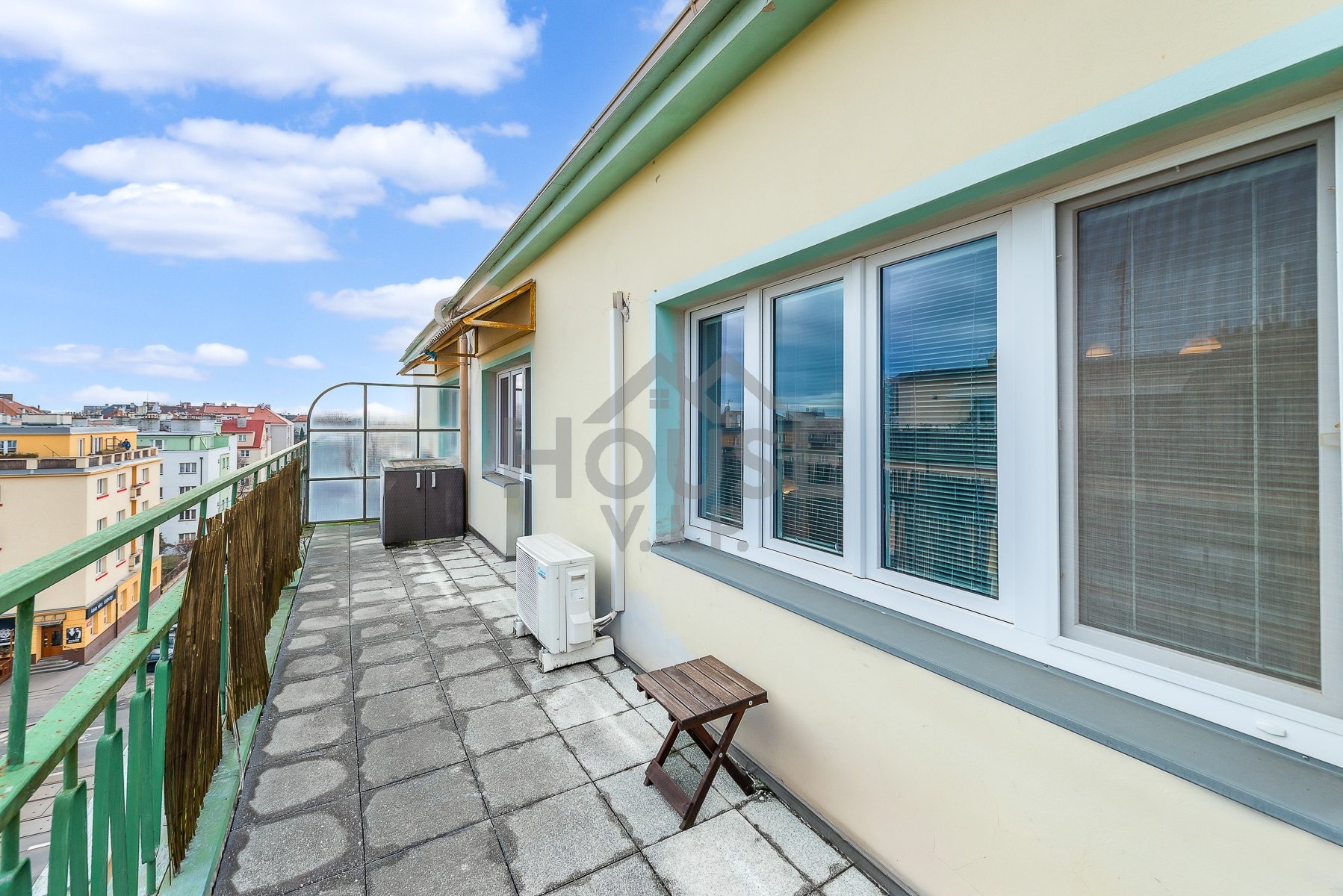 Exkluzivně nabízíme k prodeji útulný byt 2+kk, 41 m2 + 16 m2 terasa, v atraktivní lokalitě Praha 3 - Žižkov. Bytová jednotka v osobním vlastnictví se nachází v 6.NP cihlového domu s výtahem. Skládá se z předsíně, koupelny, samostatného WC, komory, obývacího pokoje s kuchyňským koutem, ze kterého je výstup na terasu a ložnice. Prostorná terasa nabízí rozhled do širokého okolí. K bytu náleží sklepní kóje. Dům je v dobrém udržovaném stavu, má nové rozvody elektroinstalace, střecha, rozvody odpadů a vody se dělaly před 15 lety. V bytě je klimatizace, na oknech jsou protisluneční fólie a sítě proti hmyzu na míru. Nemovitost se nachází ve velmi oblíbené části hlavního města, která v sobě pojí rodinné bydlení s velkým množstvím kulturního a společenského vyžití. V okolí se vyskytují školy, školky, hřiště, restaurace, kavárny. Oblíbené kino Aero je vzdáleno 5 minut pěšky. Sportovní areál Pražačka s venkovním i vnitřním bazénem je skoro za rohem. K sportování vybízí i nedaleká cyklo a běžecká stezka na Vítkov a na Hlavní nádraží. Na procházku lze vyrazit do jednoho z mnoha parků, jako jsou např. park Na Krejcárku nebo Park Židovské pece. Samozřejmostí je výborná dopravní dostupnost, zastávka tramvají je vzdálena 2 minuty pešky. Doporučuji prohlídku.
