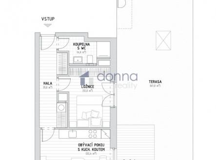 Prodej bytu 2+kk/T +garáž , 51,3 m2 + terasa 81 m2, P9 - Kbely