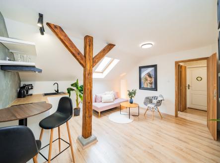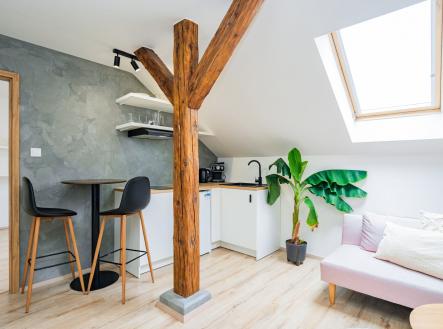 Nabízíme Vám ke koupi atraktivní jednotku 2kk, 36 m2, po rekonstrukci ve třetím patře klasického činžovního domu s osobitou atmosférou v klidné ulici Cimburkova, Praha - Žižkov. Jedná se o skvělou nabídku pro klienty hledající možnost investice a realizace v rámci krátkodobých pronájmů, ale i jako zázemí pro trvalé bydlení. Byt prošel v polovině tohoto roku celkovou rekonstrukcí. V rámci zmiňované, velmi zdařilé rekonstrukce, je vybudovaná nová koupelna včetně sanity, nové podlahové krytiny, štuky včetně výmalby, interiérové dveře s obložkami, ale i nová kuchyňská linka. Byt má příjemné a praktické dispozice. Obývací pokoj se střešním oknem je propojený s kuchyní včetně spotřebičů. Dále je zde samostatná ložnice s manželskou postelí. Ze vstupní chodbičky se vstupuje do koupelny s vanou, umyvadlem a toaletou. Jedná se o vkusný byt, který lze okamžitě užívat. Jednotka je vedená jako ateliér a náleží k ní i komora pro ukládání věcí. Hypoteční úvěr je dle aktualizovaných informací možný, propojíme Vás s informovaným finančním poradcem. Majitelé využívali dlouhodobě jednotku za účelem krátkodobých pronájmů a pro vážné zájemce máme nachystaná data obsazenosti i výnosů. Velmi příjemné jsou nízké provozní náklady bytu. Topení i teplou vodu zajišťuje plynový kotel. Velkou výhodu této jednotky je lokalita, která snoubí blízkost kompletní sítě obchodů a služeb, ale i docházkovou vzdálenost MHD v rámci několika minut. Celá oblast Žižkova prošla úžasnou proměnou, je zde vybudována nová infrastruktura i mnoho kaváren a služeb. V blízkosti je také park. Pro osobní prohlídku mě kontaktujte. Ráda Vám byt představím.