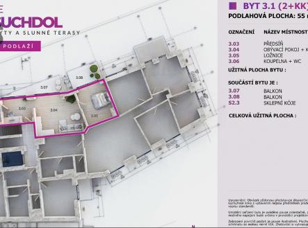 Prodej bytu 2kk 52 m2 + 2x balkon, Praha 6 - Suchdol