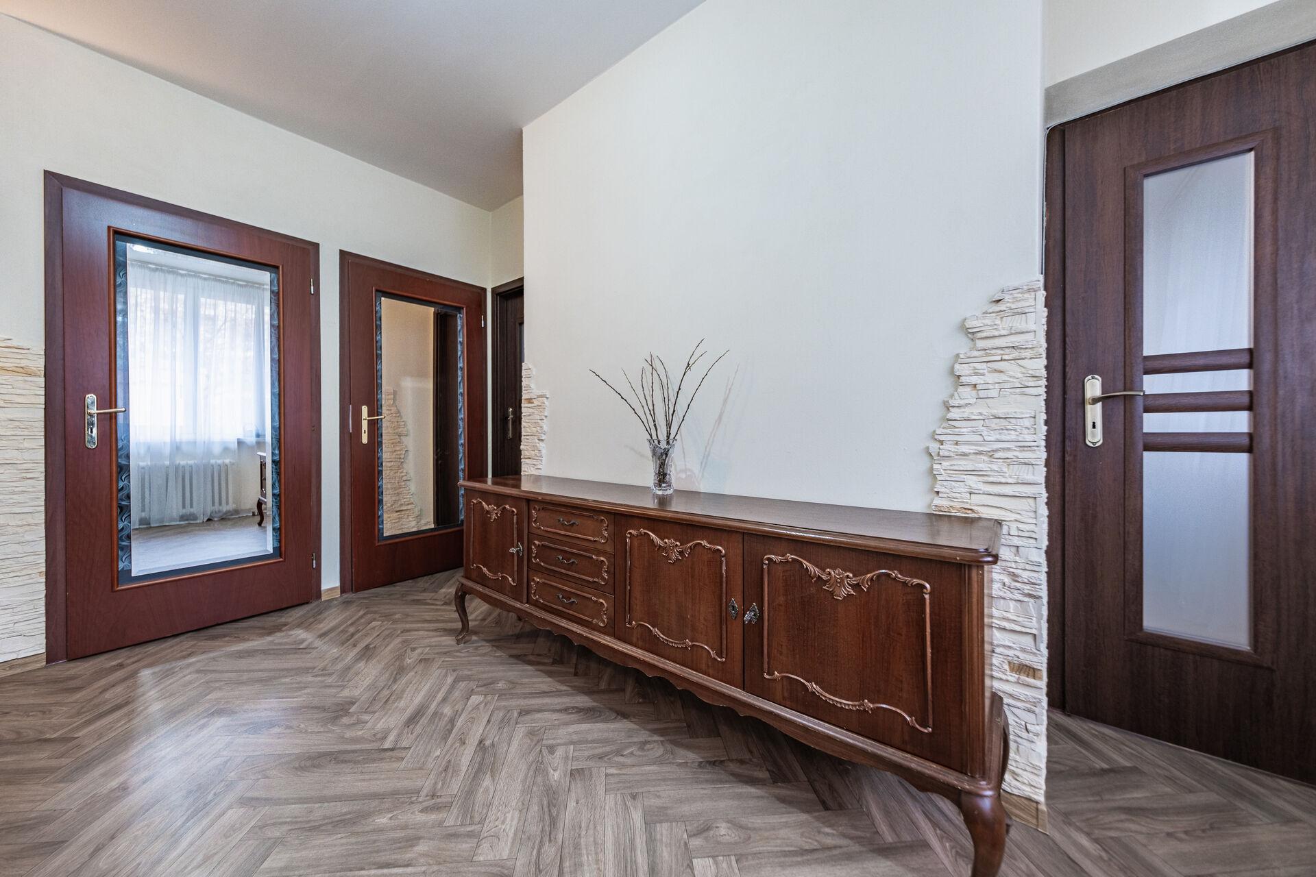 Nabízíme k prodeji světlý a prostorný byt 3+1 o velikosti 100 m², s balkónem 6 m², komorou 3 m² a sklepem 6 m², ve zvýšeném přízemí čtyřpatrového domu s oplocenou zahradou. Dispozice bytu je velmi praktická, vstupní hala se dvěma komorami, tři samostatné pokoje s vestavěnými skříněmi na míru, nová kuchyně, samostatné WC, koupelna s vanou a další komora na potraviny. Byt je světlý, vzdušný, a díky své velikosti nabízí komfortní bydlení pro rodinu i náročnější klienty. Čtyřpatrový dům (48 bytů) prošel celkovou rekonstrukcí, zateplení, oprava střechy, nové vodovodní trubky. Stejně tak byt byl celý zrekonstruován, nové podlahy, podhledy, vestavěné skříně, nová kuchyň na míru i nové koupelny. Topení centrální dálkové. Rozvody elektřiny v mědi v domě i bytě. Dům se nachází v klidné ulici s výbornou občanskou vybaveností, v docházkové vzdálenosti – školy, školky, obchody, pošta, restaurace i zdravotnická zařízení. Skvělá dopravní dostupnost do centra Prahy (MHD, metro, tramvaj). Pražské Strašnice jsou čtvrtí, která si drží osobité kouzlo a zároveň nabízí moderní městský životní styl. Byt je ideální jak pro bydlení, tak jako investiční příležitost k pronájmu.