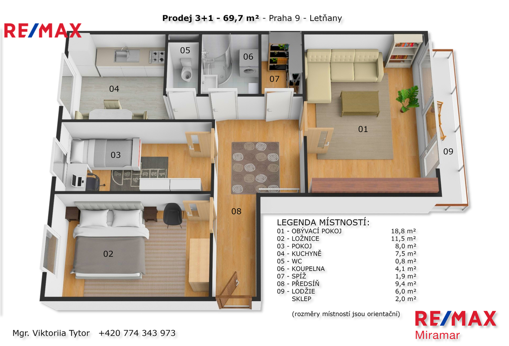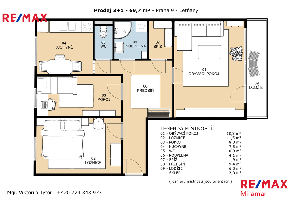Prodej bytu 3+1, 77 m² – Praha Letňany, ul. Rýmařovská