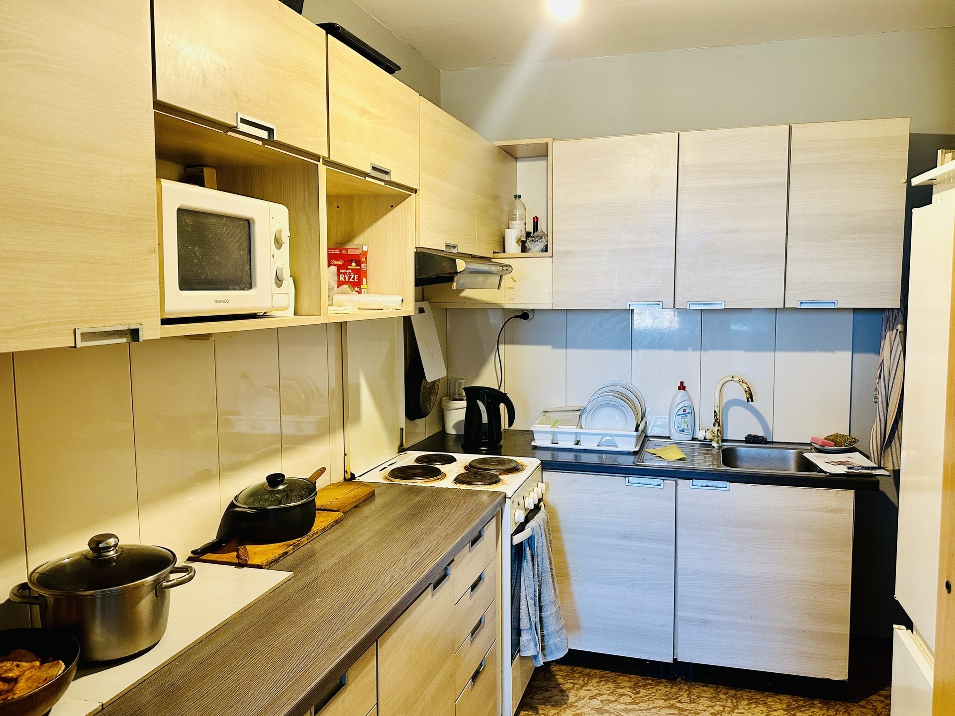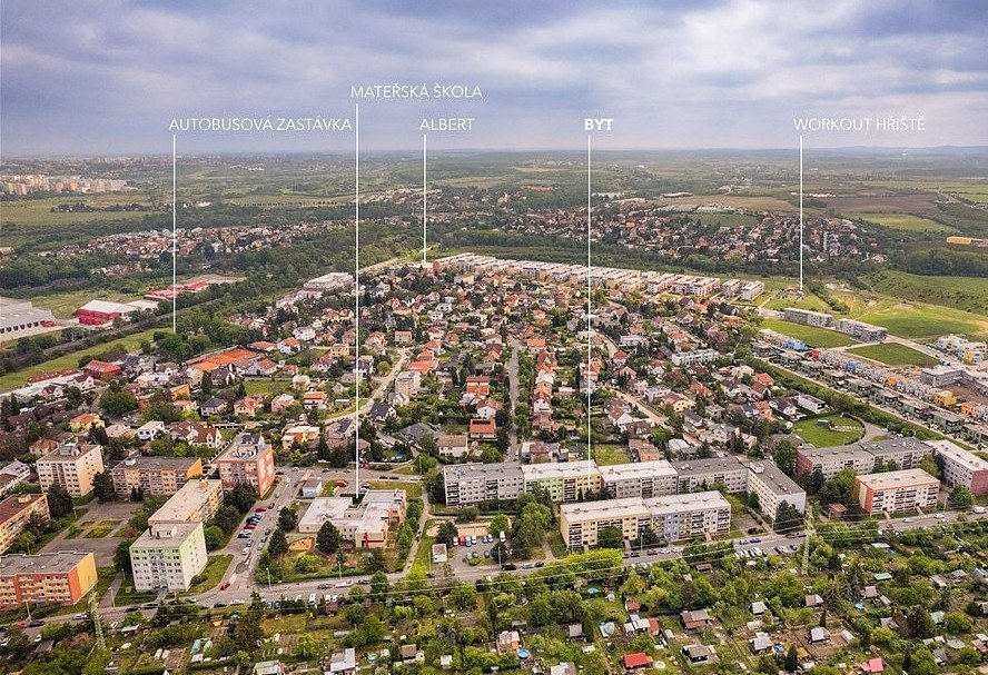 Prodej prostorného bytu o dispozici 3+1 s výměrou 85 m² se nachází v klidné části Prahy 9 - Kyje - Jahodnice, ulice Travná. Bydlení s množstvím výhod, vybudování bydlení dle vlastních představ, ideální pro rodiny i jednotlivce, kteří hledají klidné prostředí s dobrou dostupností do centra. Byt je v původním stavu s orientací na 2 světové strany SV do ulice a JZ. Z předsíně přístup centrálně do všech místností (informativní půdorys) - obývacího pokoje, kuchyně, komory, dvou pokojů, koupelny, WC. pokoje 13,53, 15,64 a 15,5m² kuchyň s jídelním koutem 17,9m² volně stojící spotřebiče (digestoř, el. sporák, lednice s mrazákem) koupelna 2,85m² se sprchovým koutem a přípojkou na pračku WC 1,06m² předsíň 13,14m² komora 2,63m² sklep 3,6m² celkem 85,85m² Možnost zajištění vizualizace a rekonstrukce na zakázku dle domluvy a představ. Dům prošel kompletní revitalizací - okna v plastu, zateplení fasády, výměna vnitřních rozvodů, rekonstrukce společných prostor. Velmi dobře fungující SVJ. Dostupnost vlakem a autobusem se do centra Prahy dostanete za pouhých 15 minut. Rychle se také autem dostanete na hlavní silnice směrem z Prahy, ale i do Prahy. Občanská vybavenost a okolí Jahodnice nabízí vše potřebné. Nachází se zde tři mateřské školky, které jsou snadno dostupné pěšky, včetně jedné soukromé. V blízkosti je také umělecká hudební škol a tenisová škola. Obchody: v blízkosti najdete centrum Jahodnice, večerku v novostavbách, supermarket Albert a obchodní centrum Europark Štěrboholy. Milovníci zeleně a rekreace ocení množství parků, včetně outdoorového a parkurového hřiště, Bikepark Jahodnice, dětská hřiště, veřejné grily, spoustu cyklostezek a různých možností výletů. Pro více informací a prohlídku mě neváhejte kontaktovat. V bytě jsou končící nájemníci, termín prohlídky tedy po vzájemné domluvě. Možnost zajištění hypotečního úvěru.