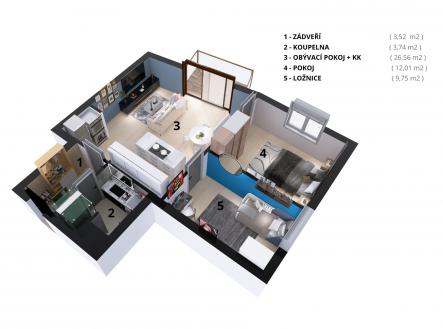 Prodej bytu 3+kk, 57 m2/balkon/sklep/parkovací místo - Praha - Dolní Chabry, novostavba