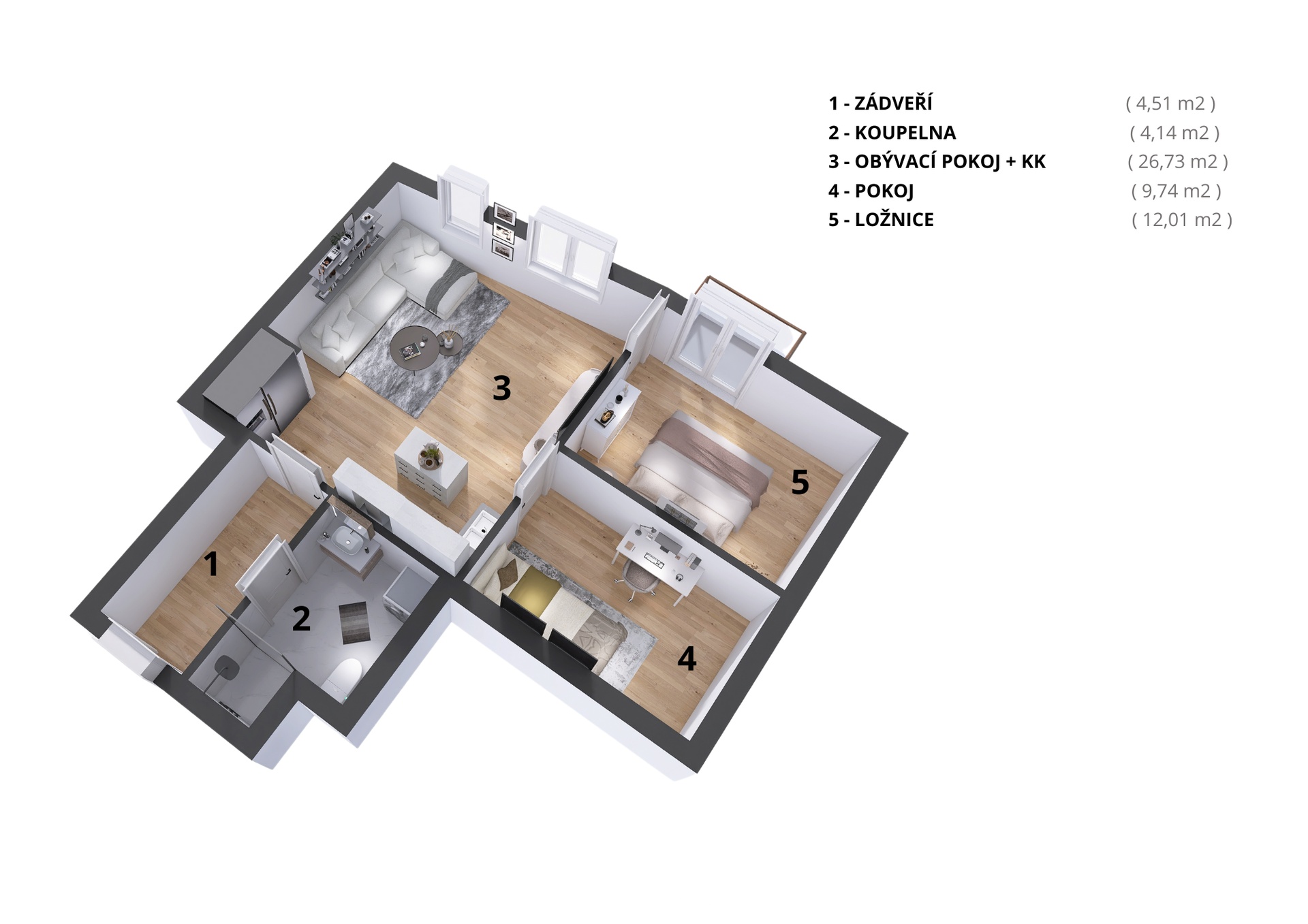 Úplně nový a čerstvě dokončený byt 3+kk se nachází ve druhém (nejvyšším) podlaží s otevřeným výhledem na Chabry s okny a balkonem do vnitřního dvora. Obytná plocha je 59 m². K příslušenství patří 30ti metrová střešní terasa přímo nad bytem s otevřeným výhledem nad ostatní domy. Terasa má přívod vody a elektřiny a je určena pro Vaši pohodu při relaxu, odpočinku a grilování. V ceně je dále zahrnuto garážové stání a sklepní kóje. Tento byt je opravdu jedinečný. Byt je kdykoliv k vidění a je k nastěhování na konci ledna 2026. Ve standardu jsou použity kvalitní materiály, dřevěné podlahy, hliníková okna s trojskly, individuální rekuperace vzduchu, venkovní bezpečnostní rolety na elektřinu a další. Dům se nachází ve staré původní části Dolních Chaber v křížení ulic Perštejnská a Kobyliská v docházkové vzdálenosti do Drahanského údolí, v blízkosti obchodního domu Billa, nedaleko autobusové zastávky směr Kobyliské náměstí. Pro kompletní informace a možnost prohlídky tohoto bytu neváhejte kontaktovat makléře, který má prodej tohoto projektu na starosti.