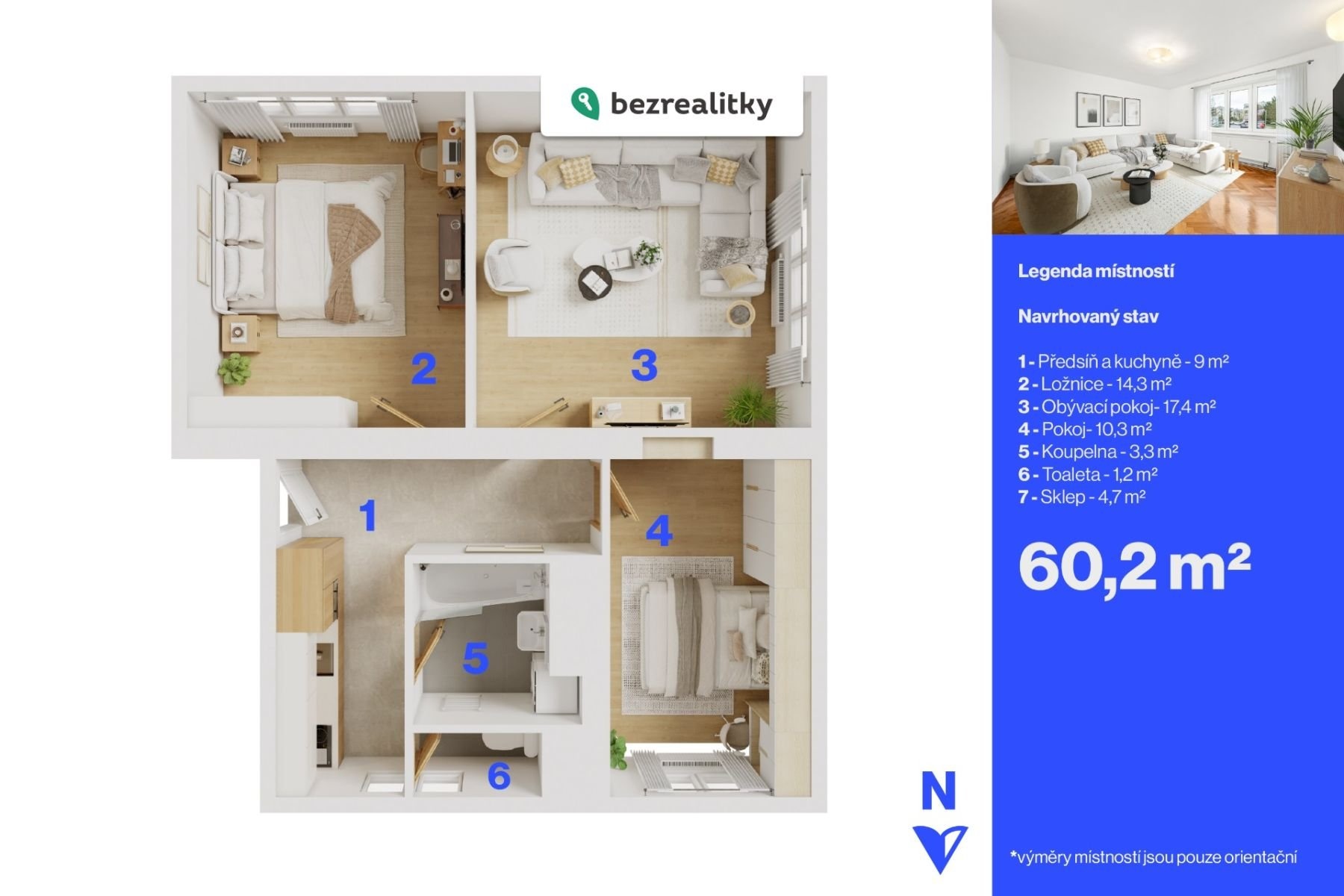 Nabízím byt 3+kk o rozloze 60m² v osobním vlastnictví. Byt se nachází v malém cihlovém domě (pouze dva byty na patře) ve druhém nadzemním podlaží ze tří. Byt je v dobrém stavu, vyklizený a ihned k nastěhování. V bytě je kuchyňská linka, koupelna s vanou a WC zvlášť. Veškeré vybavení na fotkách zůstává. O vytápění a ohřev teplé vody se stará plynový kotel. Alternativně lze na ohřev teplé vody použít také boiler. Kompletní rekonstrukce provedena v roce 2014, nové stoupačky 2018, nová okna v roce 2024. K dispozici kabelový internet od Vodafonu či optický od pe3ny.net. Samozřejmostí je dobře fungující SVJ s financemi a bez dluhů, které udržuje dům v dobrém stavu. Za zmínku stojí například pingpongový stůl a sauna (za poplatek na úhradu energií) k dispozici ve společných prostorách domu. Zličín není pouze nákupní centrum, nedaleko se nachází malebná zástavba, kde je i tento byt v klidné ulici Mladých se spoustou zeleně a bezproblémovým parkování. V blízkosti se kromě obchodního centra nachází i vše potřebné: MHD (metro v docházkové vzdálenosti, popř. autobus ve vedlejší ulici), škola/školka, obchody, restaurace i pošta. Lokalita rovněž vybízí k trávení volného času, v okolí např. park Na Prameništi, Bistro Rybníčky cestou přes kavárnu (Mlsárna na staré kovárně), rybník Dolejšák vhodný i ke koupání či blízké fotbalové hřiště. Energetický průkaz není k dispozici, proto je udána třída G. Možnost financovat hypotečním úvěrem. Mohu doporučit poradce, který Vám úvěr zajistí zdarma a za nejlepších podmínek na trhu. Pokud Vás tato nabídka zaujala, neváhejte mě kontaktovat. Těším se s Vámi na prohlídku i případné dotazy. Tato nemovitost je určena výhradně přímým zájemcům o koupi. Na inzerát můžete také reagovat přímo na webu Bezrealitky.