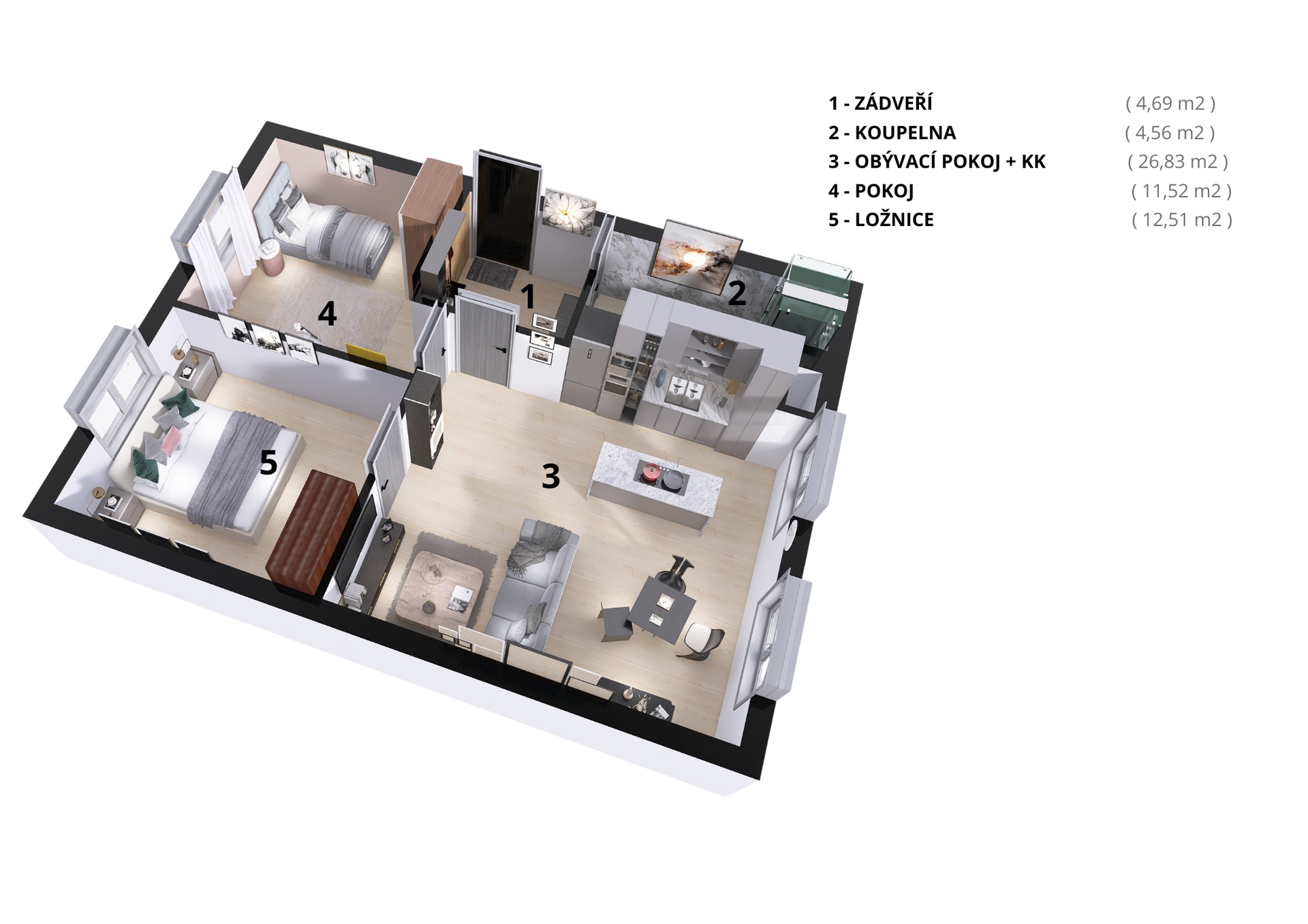 Úplně nový byt 3+kk se nachází v prvním podlaží s okny do ulice Perštejnská a do vnitřního dvora. Jedná se o jeden ze sedmi bytů v útulném bytovém domě čerstvě po kolaudaci. Obytná plocha je 62 m². K příslušenství zahrnutému do ceny prodeje patří veliká 40 metrová střešní terasa, kde je vyvedena elektřina, voda a je určena pro Vaši pohodu, grilování a možnost relaxu. Dále je v ceně venkovní parkovací stání a sklepní kóje. Byt je kdykoliv k vidění a je k nastěhování na konci ledna 2026. Ve standardu jsou použity kvalitní materiály, dřevěné podlahy, hliníková okna s trojskly, individuální rekuperace vzduchu, venkovní bezpečnostní rolety na elektřinu a další. Dům se nachází ve staré původní části Dolních Chaber v křížení ulic Perštejnská a Kobyliská v docházkové vzdálenosti do Drahanského údolí, v blízkosti obchodního domu Billa, nedaleko autobusové zastávky směr Kobyliské náměstí. Pro kompletní informace a možnost prohlídky tohoto bytu neváhejte kontaktovat makléře, který má prodej na starosti.
