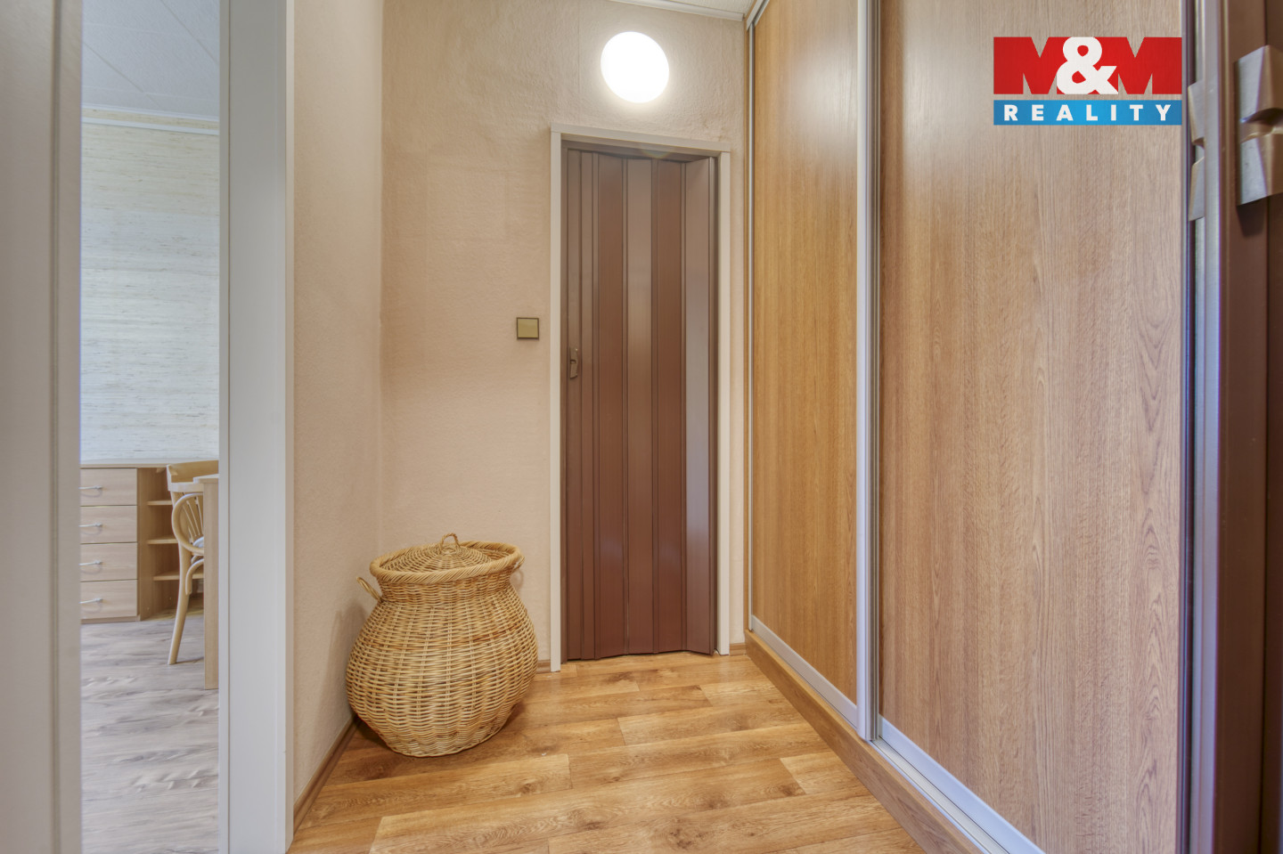 Nabízíme udržovaný byt o dispozici 3+kk v klidné části obce Chodov. Byt se nachází v 5. patře revitalizovaného panelového domu s výtahem (zateplení, fasáda, okna, dveře, stupačky, aj.) s celkem 8 nadzemními podlažími. Podlahová plocha dle Prohlášení vlastníka činí 59 m² a zahrnuje 3 místnosti a lodžii. Byt prošel částečnou rekonstrukcí. Je zde obývací pokoj s kuchyňským koutem, ložnice, dětský pokoj, koupelna s vanou, samostatné WC, vstupní chodba, komora. Jednotka je ve velmi dobrém stavu a nabízí šikovné úložné prostory. Součástí je také vlastní sklepní kóje v podzemním podlaží. Vytápění a ohřev vody jsou zajištěny dálkově. Tento byt představuje ideální volbu pro ty, kdo hledají velmi klidné bydlení s výbornou dostupností městské infrastruktury. Neváhejte nás kontaktovat pro více informací a sjednání prohlídky.