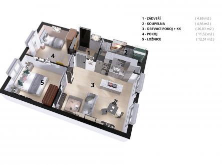 Prodej bytu 3+kk, 64 m2/40 m2 terasa/sklep/parkovací místo - Praha - Dolní Chabry, novostavba