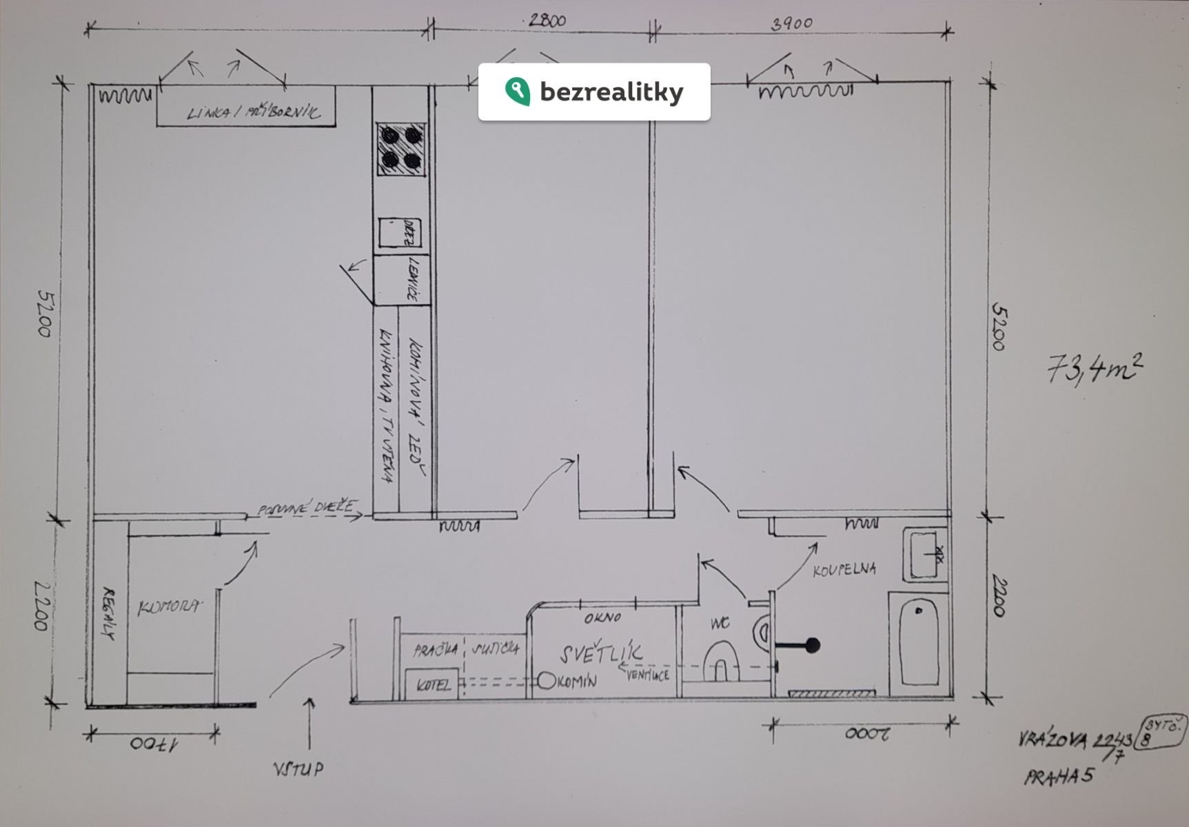 Nabízíme k prodeji jedinečný byt 3+kk v cihlovém domě, který se nachází v památkové zóně v centru obce Praha. Byt je situován ve třetím patře a nabízí díky umístění v centru skvělou dostupnost městské hromadné dopravy i silniční infrastruktury. Byt prošel v roce 2019 důkladnou rekonstrukcí všech sítí, která splňuje všechny moderní standardy bydlení. V bytě byl zachován původní historický ráz domu z roku 1936, k čemuž přispívají designové prvky jako retro vypínače THPG, choromové kliky M&T, topení ISAN nebo dobová svítidla, knihovna na míru. Jde o jednopodlažní byt s užitnou a podlahovou plochou 73 m², který je vybaven moderním nábytkem a spotřebiči, což nabízí komfortní bydlení ihned k nastěhování. K bytu náleží prostorná komora. Vytápění a ohřev vody jsou řešeny moderními technologiemi. K bytu náleží i sklepní prostory o velikosti 3 m², které poskytují další úložné možnosti. Dům je vybaven výtahem, prošel rekonstrukcí společných prostor, v roce 2025 byla kompletně vyměněna střecha a zrekonstruovány terasy, dům byl částečně zateplen (pro byt, který nabízíme, zcela), fasáda byla natřena. Dům je vhodný pro rodiny hledající pohodlné městské bydlení, je v tiché jednosměrné ulici, přitom za rohem od veškeré občanské vybavenosti a pár kroků od smíchovské náplavky. Většinu obyvatel domu tvoří stálí majitelé. Provozní náklady Vám sdělí přímá majitelka, která je kontaktní osobou u tohoto inzerátu a také předsedkyní SVJ, takže může poskytnout veškeré dostupné informace. Prohlídky jsou možné po předchozí domluvě. Pro více informací o této nemovitosti nebo sjednání prohlídky nás prosím kontaktujte nebo vyplňte níže uvedený formulář, rádi Vám pomůžeme. Realitní kanceláře, prosíme, nevolat. Tato nemovitost je určena výhradně přímým zájemcům o koupi. Na inzerát můžete také reagovat přímo na webu Bezrealitky.