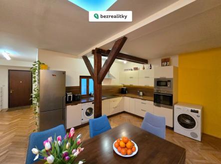Slunný byt 3+kk s terasou v posledním patře na Vinohradech, ulice Sázavská. Klidný vnitroblok, naprosté soukromí a světlo po celý den. Byt o velikosti 75 m² se nachází v 5. patře s výtahem a je orientovaný na jih a sever. Dominantou je terasa situovaná do tichého vnitrobloku, která díky rohovému umístění nabízí výjimečné soukromí. Dispozice: obývací pokoj se vstupem na terasu, kuchyň s jídelní částí, ložnice, koupelna s WC a dostatek úložných prostor. Byt je ve velmi dobrém stavu, po částečné rekonstrukci, připravený k okamžitému nastěhování. K dispozici je klimatizace a vlastní vytápění. Dům prošel rekonstrukcí fasády a střechy v roce 2025. Vynikající lokalita v pěší dostupnosti centra – tramvaj i metro pár minut od domu, v okolí parky, kavárny a restaurace. Prohlídky jsou možné po domluvě, preferuji vážné zájemce. RK prosím nekontaktovat. Tato nemovitost je určena výhradně přímým zájemcům o koupi. Na inzerát můžete také reagovat přímo na webu Bezrealitky.