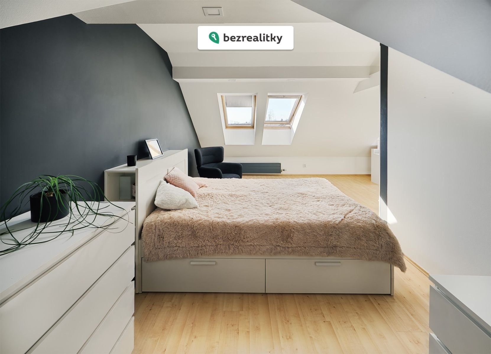 Nabízím k prodeji prostorný podkrovní byt 3+kk s výhledem do zeleně ve 4. nadzemním podlaží cihlového domu v ulici Stochovská, Praha 6 – Ruzyně. Byt disponuje podlahovou plochou 105 m² (užitná 80 m²) a náleží k němu sklep o velikosti 3 m². Poslední patro zajišťuje soukromí bez sousedů nad vámi a vytváří příjemnou atmosféru podkrovního bydlení. Interiér je vzdušný, světlý a díky střešním oknům přirozeně prosvětlený po celý den. Dispozice nabízí prostorný obývací pokoj s kuchyňským koutem, dvě samostatné neprůchozí ložnice, komoru, koupelnu s rohovou vanou a samostatné WC. Komfort bydlení zvyšují dvě klimatizační jednotky. Byt byl vybudován jako nová vestavba v roce 2007 a je ve velmi dobrém, udržovaném stavu. Vytápění a ohřev vody zajišťuje vlastní plynový kotel. Součástí vybavení jsou střešní okna Velux, plovoucí podlahy, keramická dlažba a kuchyňská linka s indukční deskou, horkovzdušnou troubou, vestavnou myčkou a mikrovlnnou troubou. Samozřejmostí je optické připojení k internetu. Bytový dům prošel kompletní revitalizací, včetně rekonstrukce střechy a zateplení fasády, což přispívá k energetické úspornosti i celkovému komfortu bydlení. Společenství vlastníků je bez dluhů a bez plánovaných zásadních investic. Parkování je možné přímo u domu bez parkovacích zón. K dispozici je také společný balkon v mezipatře a upravený vnitroblok se sezením a možností grilování. Lokalita nabízí ideální kombinaci klidného bydlení a výborné dostupnosti do centra. Škola i školka se nachází prakticky přes ulici, zastávky MHD i vlakové spojení jsou v docházkové vzdálenosti (cca 3–5 minut). Obora Hvězda je vzdálena přibližně 5 minut chůze a přírodní rezervace Divoká Šárka zhruba 2 km. Byt je v osobním vlastnictví, bez právních omezení a je možné jej financovat hypotečním úvěrem. Pro více informací nebo sjednání prohlídky mě neváhejte kontaktovat. Prosím realitní kanceláře, aby mě nekontaktovaly s nabídkou spolupráce. Tato nemovitost je určena výhradně přímým zájemcům o koupi. Na inzerát můžete také reagovat přímo na webu Bezrealitky.