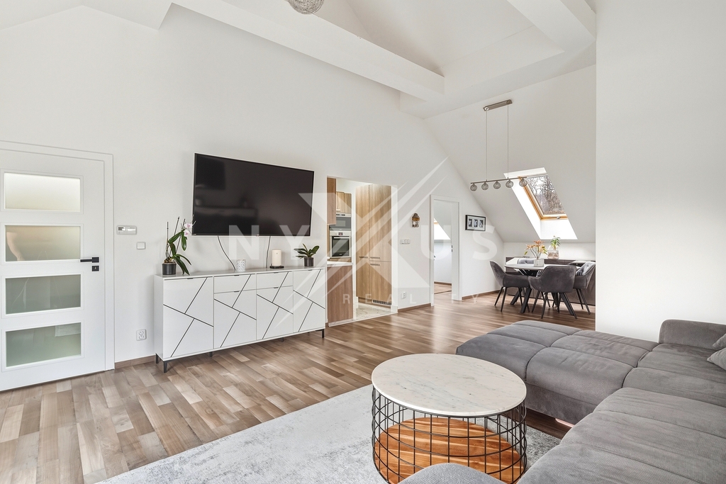 Byt po celkové rekonstrukci o dispozici 3+kk s plochou 83 m² doplněný o terasu 10 m², který se nachází ve 2. patře bytového domu z roku 2016 v klidné části Zbraslavi, ulice K Radotínu. Byt je ideální volbou pro ty, kteří chtějí bydlet v Praze, ale zároveň mít kolem sebe dostatek zeleně a klidu. Hlavní obytný prostor tvoří vzdušný obývací pokoj s vysokými stropy a přiznanými trámy, který působí velmi otevřeně a nabízí dostatek denního světla. Z obývací části je přímý vstup na terasu s výhledem do zeleně, která poskytuje příjemné soukromí a prostor pro odpočinek. Kuchyňská linka je řešena na míru a plynule zapadá do celého konceptu bytu. V bytě je instalováno podlahové vytápění a klimatizace. Dispozici dále doplňují dva samostatné pokoje, koupelna se sprchovým koutem a toaletou a praktické úložné prostory. Byt je po kvalitní rekonstrukci a připraven k okamžitému užívání bez nutnosti dalších investic. Součástí prodeje je kryté parkovací stání. Celý areál je uzavřený a monitorovaný kamerovým systémem. Byt má k dispozici společnou zahradu, ke které náleží i vlastní zahradní domek – ideální pro uložení kol, sportovního vybavení nebo sezónních věcí. Lokalita ulice K Radotínu je oblíbená zejména díky kombinaci klidného bydlení a dobré dostupnosti. V okolí najdete základní občanskou vybavenost a zároveň rychlé napojení směrem na centrum Prahy. Velkým benefitem je blízkost přírody – cyklostezky podél Vltavy, lesní cesty i možnosti procházek nebo sportu. Další informace: Energetická náročnost budovy: Třída C. Nemovitost je v osobním vlastnictví a lze ji tedy financovat hypotečním úvěrem, který Vám zdarma pomůžeme vyřídit za nejvýhodnějších podmínek na trhu. Zaujala vás tato nabídka? Neváhejte mě kontaktovat pro více informací nebo si rovnou domluvit termín prohlídky. Těším se na setkání s vámi!