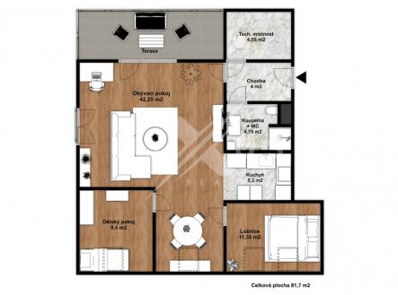 Prodej bytu 3+kk - 83 m² + terasa 10 m² a parkovací stání, K Radotínu, Praha 5 - Zbraslav