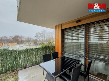 Nabízíme k prodeji luxusní byt 3+kk o ploše 86 m² s předzahrádkou a lodžií o celkové vel. 151m2 v prestižním rezidenčním projektu Riviera Modřany, oceněném Stavbou roku.Tato moderní novostavba z cihel se nachází v klidné části Modřan. Byt v 1.nadzemním podlaží disponuje prostornou slunnou terasou a lodžií s přístupem z každého pokoje, předzahrádku s výhledem do zeleně. Součástí je také garážové stání s úložným prostorem na 2 kola. Byt je vybaven standardy a technologií na vysoké úrovni, kuchyňská linka vybavená spotřebiči, dřevěná fr. okna s bezp. folií a s el. ovládanými žaluziemi, dřevěná podlaha, velkoformátové dlažby, centrální rekuperace, FVE, inteligentní ovládání centr. vytápění, optika. Dostatek úložných prostor v samostatné šatně a prostorné komoře. Okolí nabízí bohaté možnosti pro aktivní odpočinek, včetně cyklostezky, golfového hřiště a dětských či sportovních hřišť.Ideální volba pro ty, kteří hledají moderní bydlení v klidné lokalitě s výbornou dostupností do centra města.