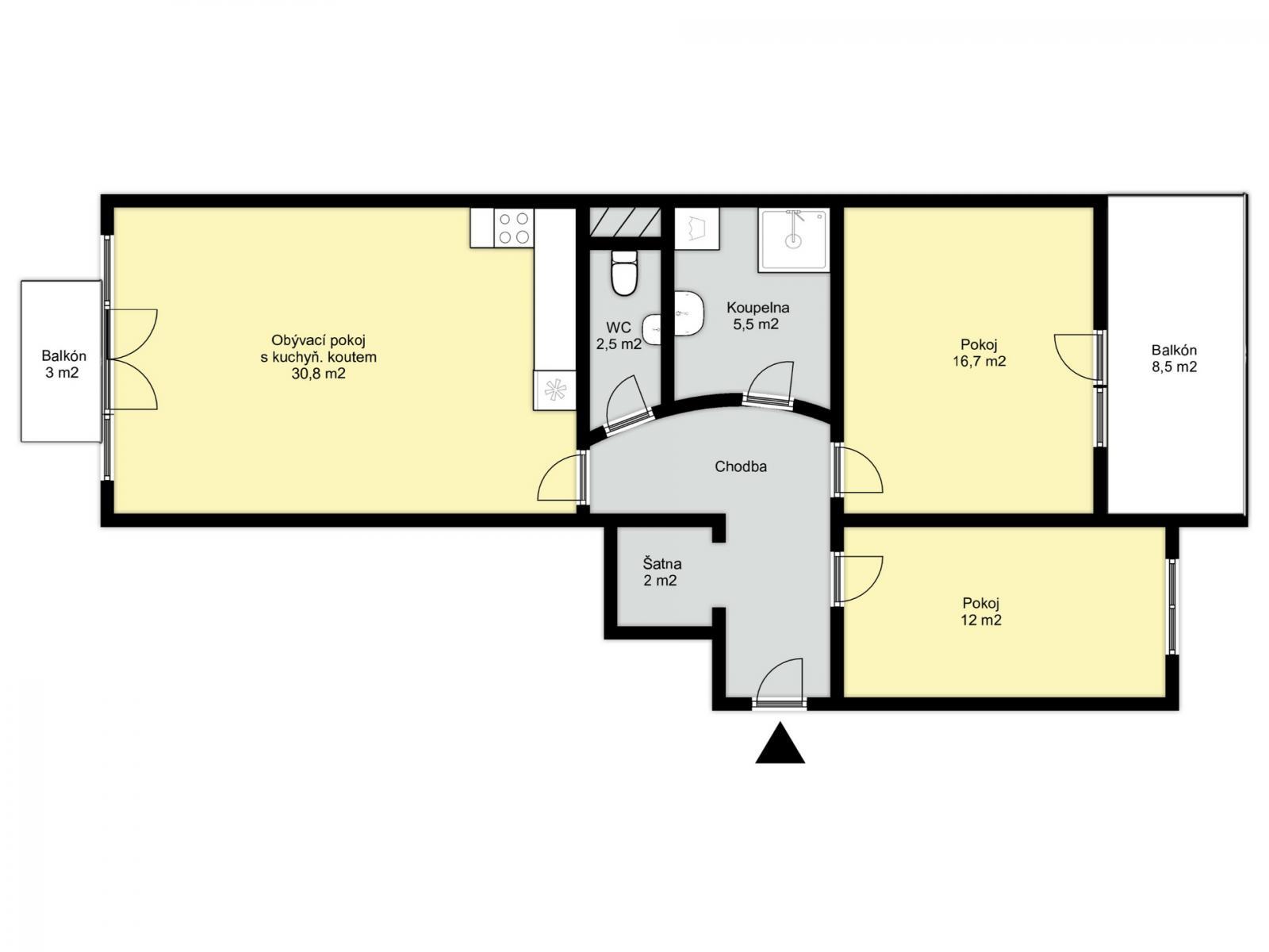 Prodej bytu 3+kk - 91 m2 s 2 balkóny a garážovým stáním