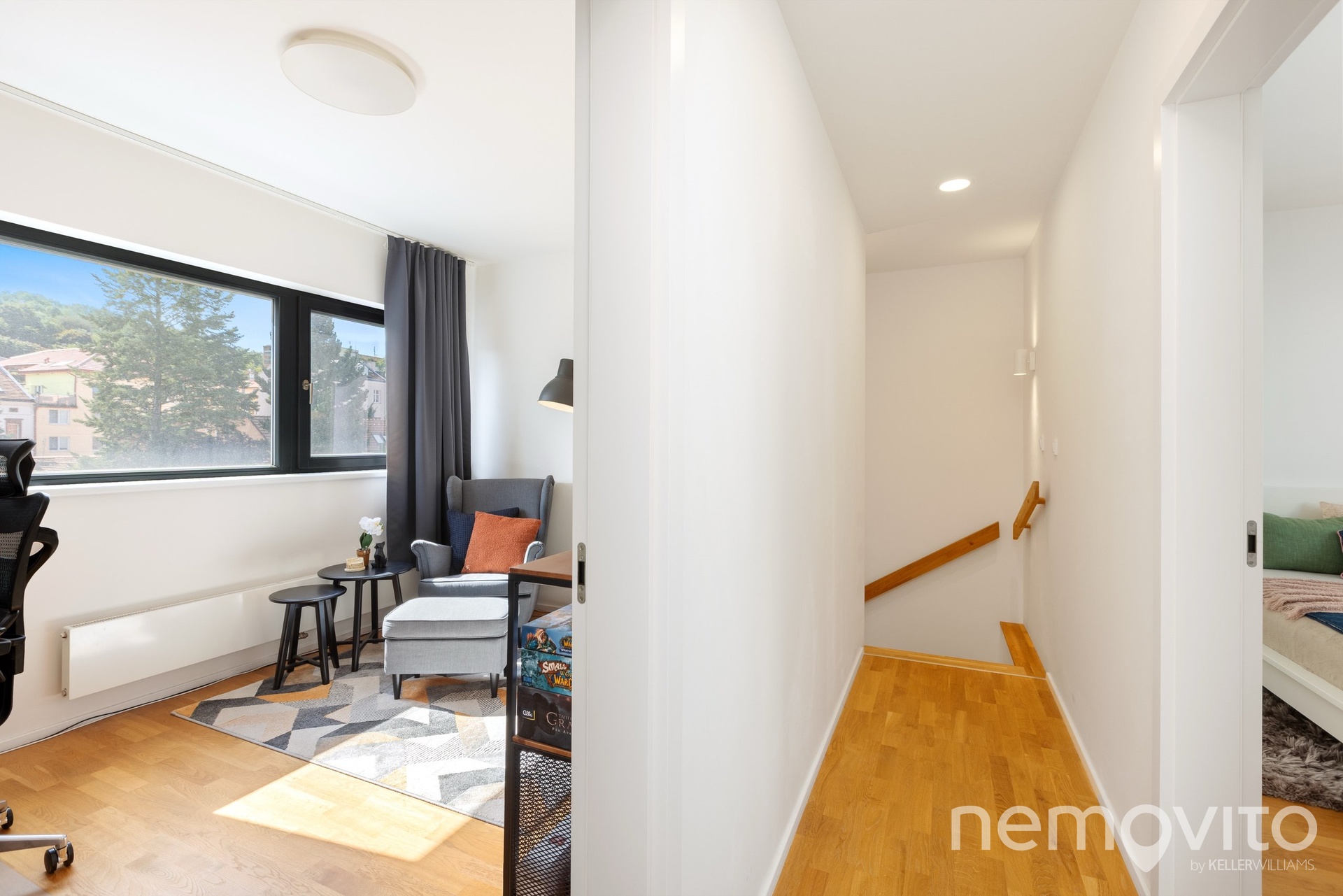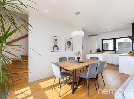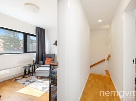 Skutečně prostorný byt 3+kk, který nabízí ve dvou podlažích téměř 100 m2. Dále také sklep, balkon a velké rohové garážové stání. Jednotka je umístěna na rohu budovy a poskytuje tak rovněž vysokou míru soukromí díky minimálnímu počtu sousedů. Budova byla dokončena v roce 2020 a byt je ve skvělém stavu bez nutných investic. Díky velké ploše je velikost obýváku skutečně velkorysá. 39 m2 poskytuje dostatek prostoru pro plnohodnotnou jídelnu, která navazuje na kuchyni do tvaru U, ke které pod schody náleží také spižírna. V části pro pohovku či pracovnu je pak výstup na 5 m2 balkon s orientací na jih, tedy směrem na Šmukýřku. Díky orientaci na odvrácenou stranu od vytížených tahů je tak v bytě skutečně klid. Velkoformátová okna zajišťují vysokou míru proslunění, které lze však regulovat venkovními žaluziemi. Dole je pak ještě samostatné WC a vstupní zádveří. Přes schodiště je přístupná soukromá část bytu, kterou tvoří dvě ložnice, koupelna a také šatna. Menší ložnice má plochu 12 m2, větší pak 14 m2. Ložnice nejsou zdmi v kontaktu s žádným sousedním bytem, ale také ani mezi sebou. Mimo zmíněné spižírny a šatny náleží k bytu také 3 m2 velký sklep. Výhodou je také velké parkovací stání, které je v rohu bez dalších okolních stání. Ačkoliv je byt klidný, tramvaj je zhruba 300 m a spoj na Anděl tak v řádu jednotek minut. Pokud vás o nabídce zajímá více informací, rád vám pošlu odkaz na web bytu s dalšími fotkami, plánky a podobně.