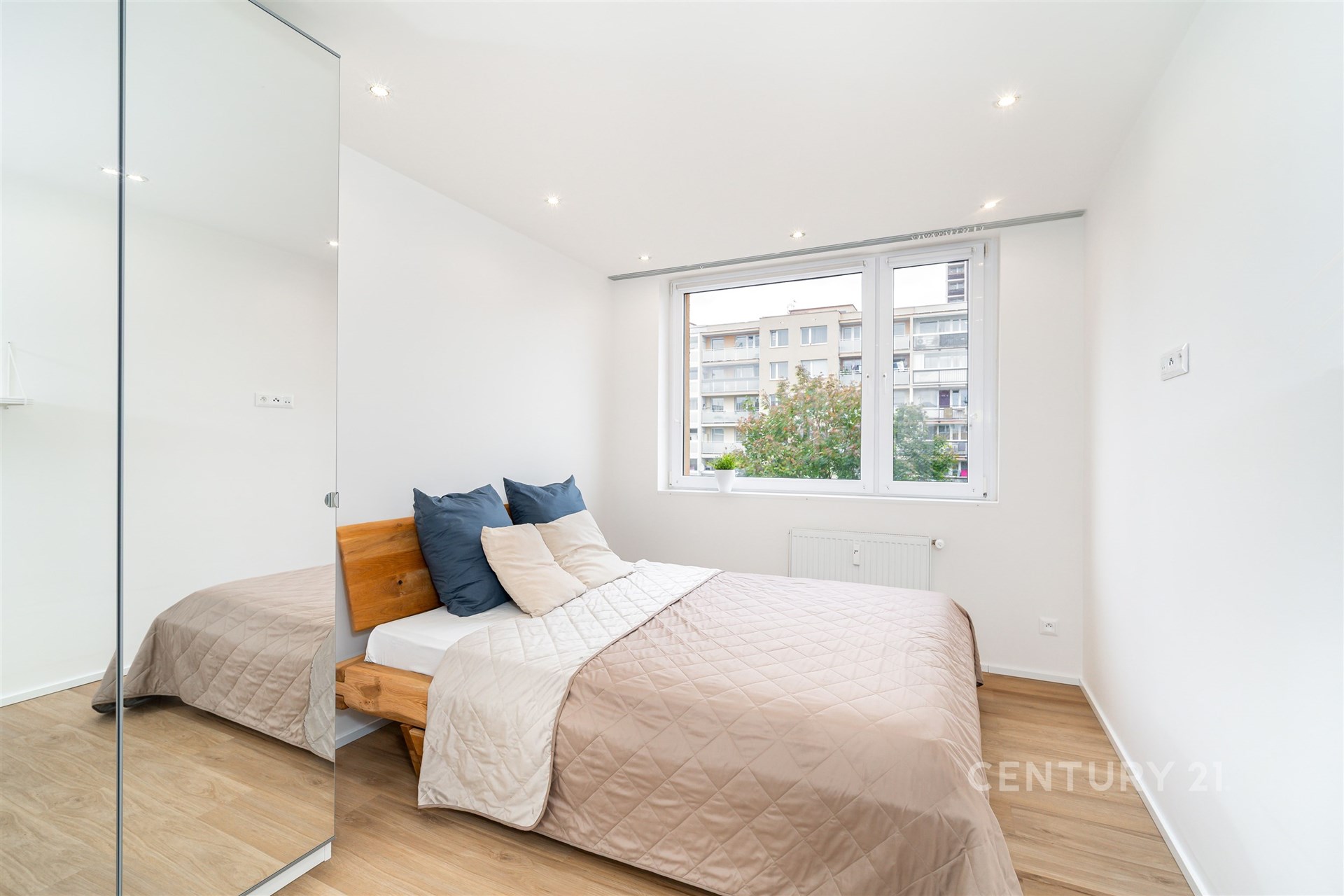 V exkluzivním zastoupení nabízíme k prodeji kompletně zrekonstruovaný světlý byt 3+kk s velkou lodžií a sklepem. Byt o rozloze 74m2 se nachází v 6. patře udržovaného domu s výtahem. Prostorný obývací pokoj je propojen s kuchyní, která disponuje lednici s mrazákem, elektrickou troubou, plynovým sporákem, digestoří a myčkou. Z obývacího pokoje je výstup na lodžii. V ložnicích i na chodbě jsou zabudované skříně, které poskytují spoustu úložného prostoru. V bytě proběhla kompletní rekonstrukce včetně elektřiny, štuků, výměny podlah, interiérových dveří i oken. V koupelně je sprchový kout, toaleta, umyvadlo se zrcadlem a místo na pračku. V domě je k dispozici malé fitness centrum. V těsné blízkosti domu se nachází veškerá občanská vybavenost supermarket Kaufland, BILLA, školy, školky, poliklinika. U domu dětské hřiště. Na procházku si můžete vyjít do Parku u Labe nebo Modřanské rokle. Výborná dopravní dostupnost. Rozměry jednotlivých místností: ložnice 12 m2 ložnice 12 m2 koupelna 4 m2 hala 10 m2 obývací pokoj 30 m2 lodžie 6 m2 Doporučuji prohlídku